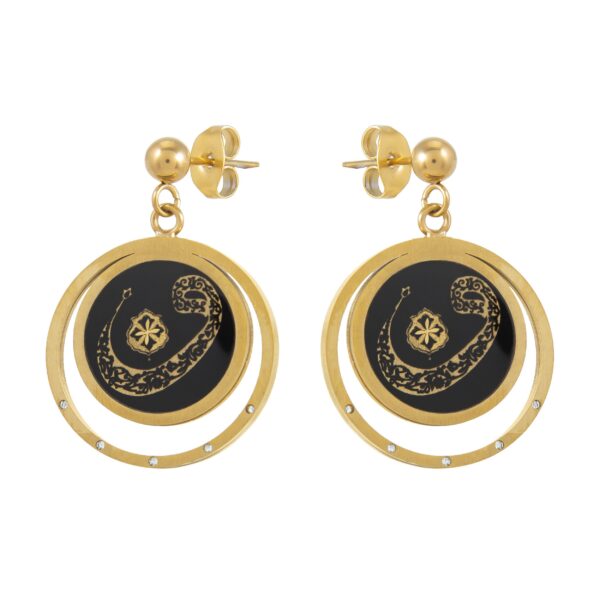 Price and Buy Gold Plated Drop Earrings Handcrafted Dream Catcher Design Black Enamel