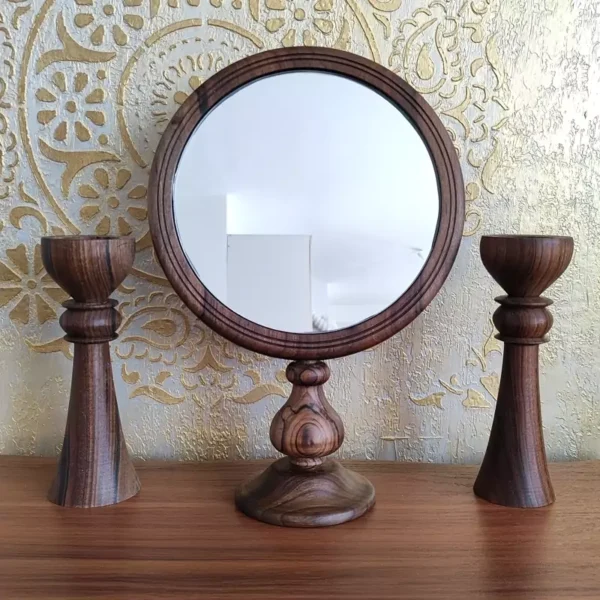 Price and Buy Handcrafted Walnut Mirror Frame & Candlesticks – 30 cm Height Rustic Set