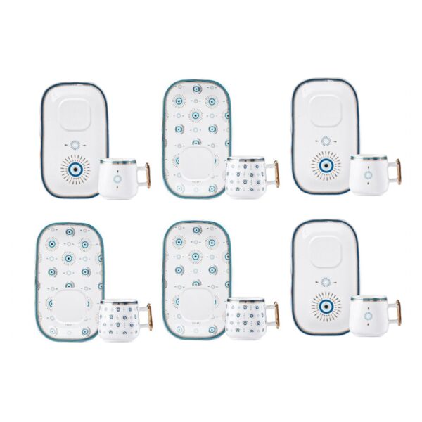 Price and Buy Artistic Porcelain Tea Set with White Evil Eye Design – Protective & Beautiful Tableware