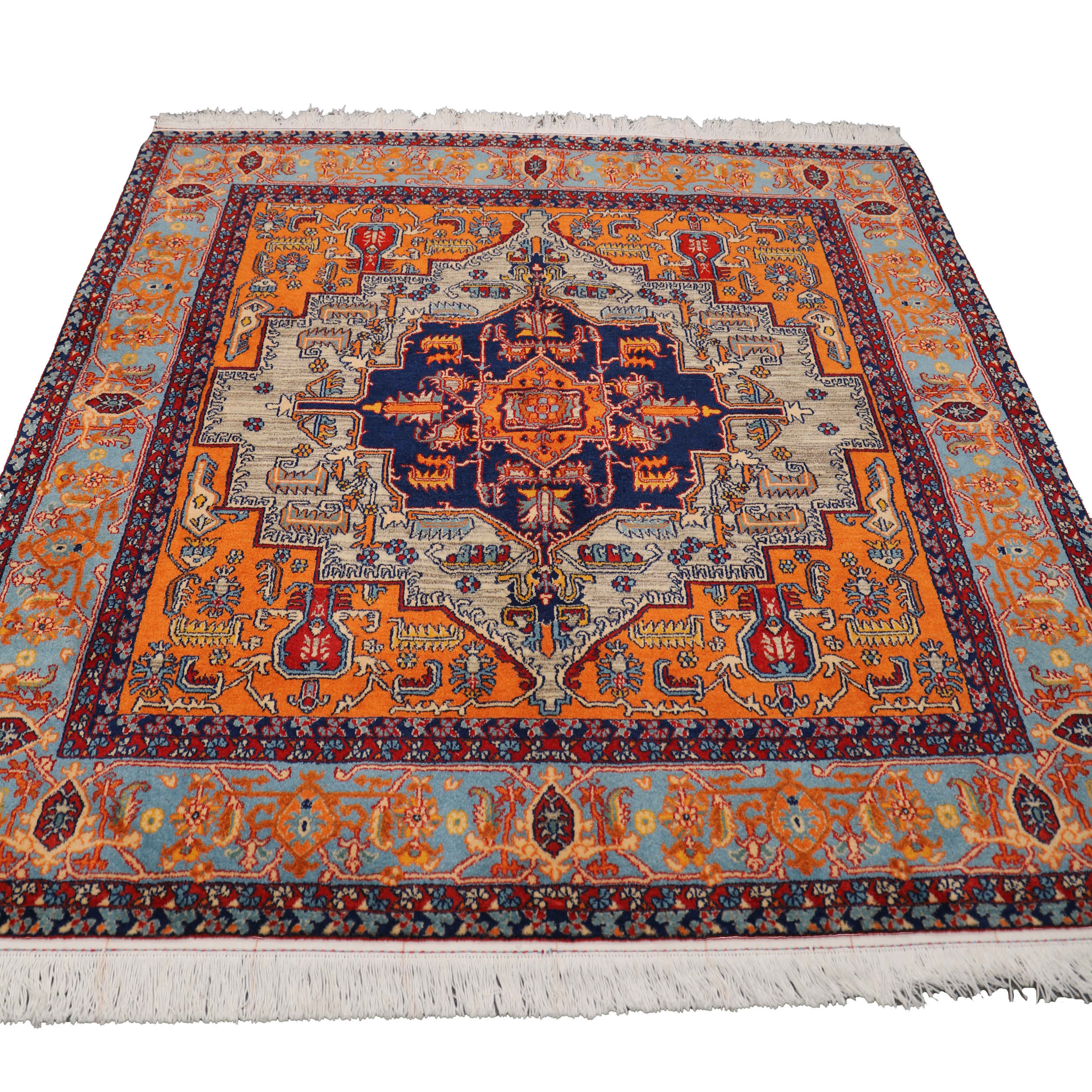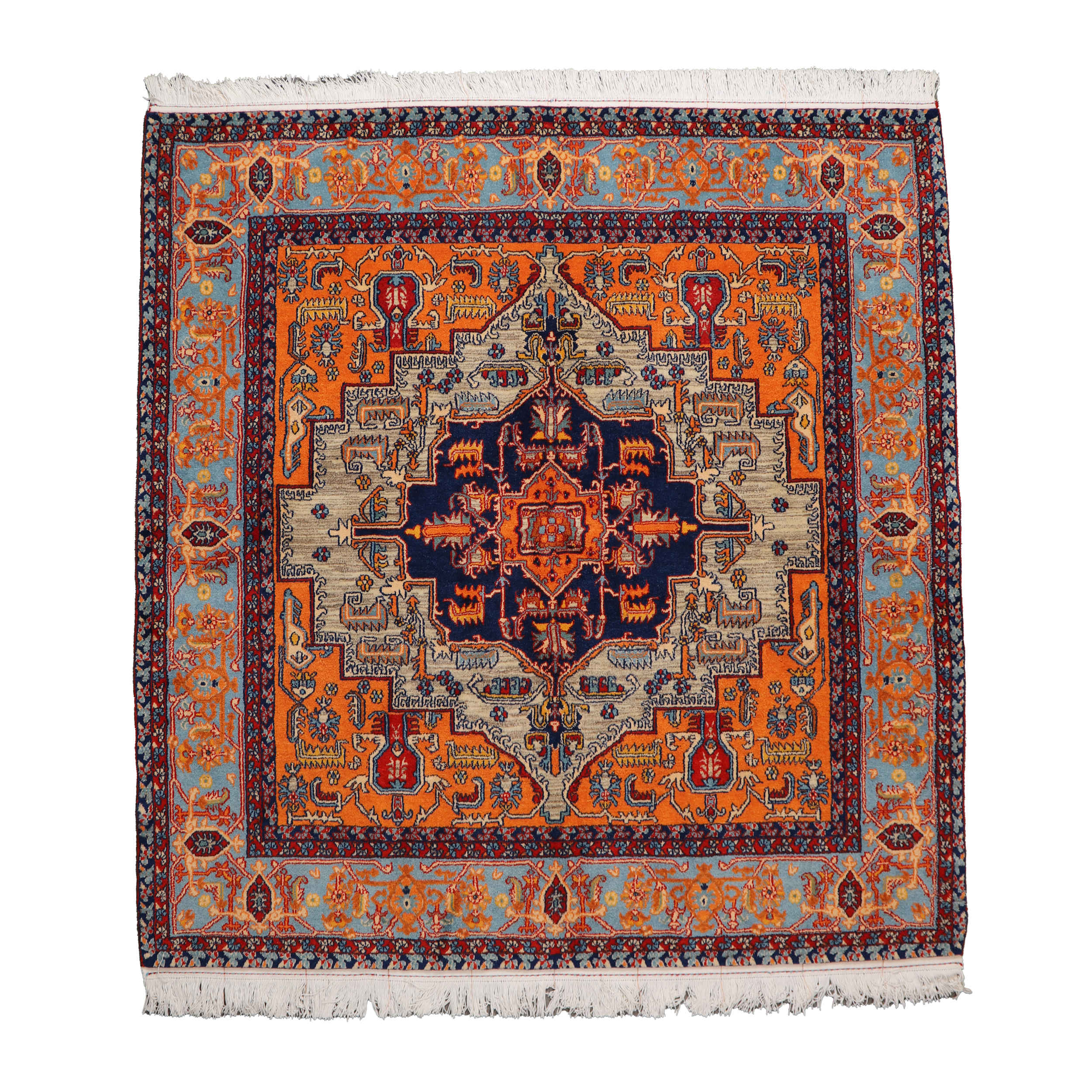 Weight 11000 g Dimensions 177 × 177 × 1 cm Construction Hand-knotted Material Wool General Size Category Medium Product Type Persian Accent Carpet Warp Wool Weft Wool Lint Wool Condition New Style Tribal Origin Iran Regional Origin Isfahan Pattern Herati Shape Square Color Orange Room Type Dining Room, Hallway, Living Room, Office