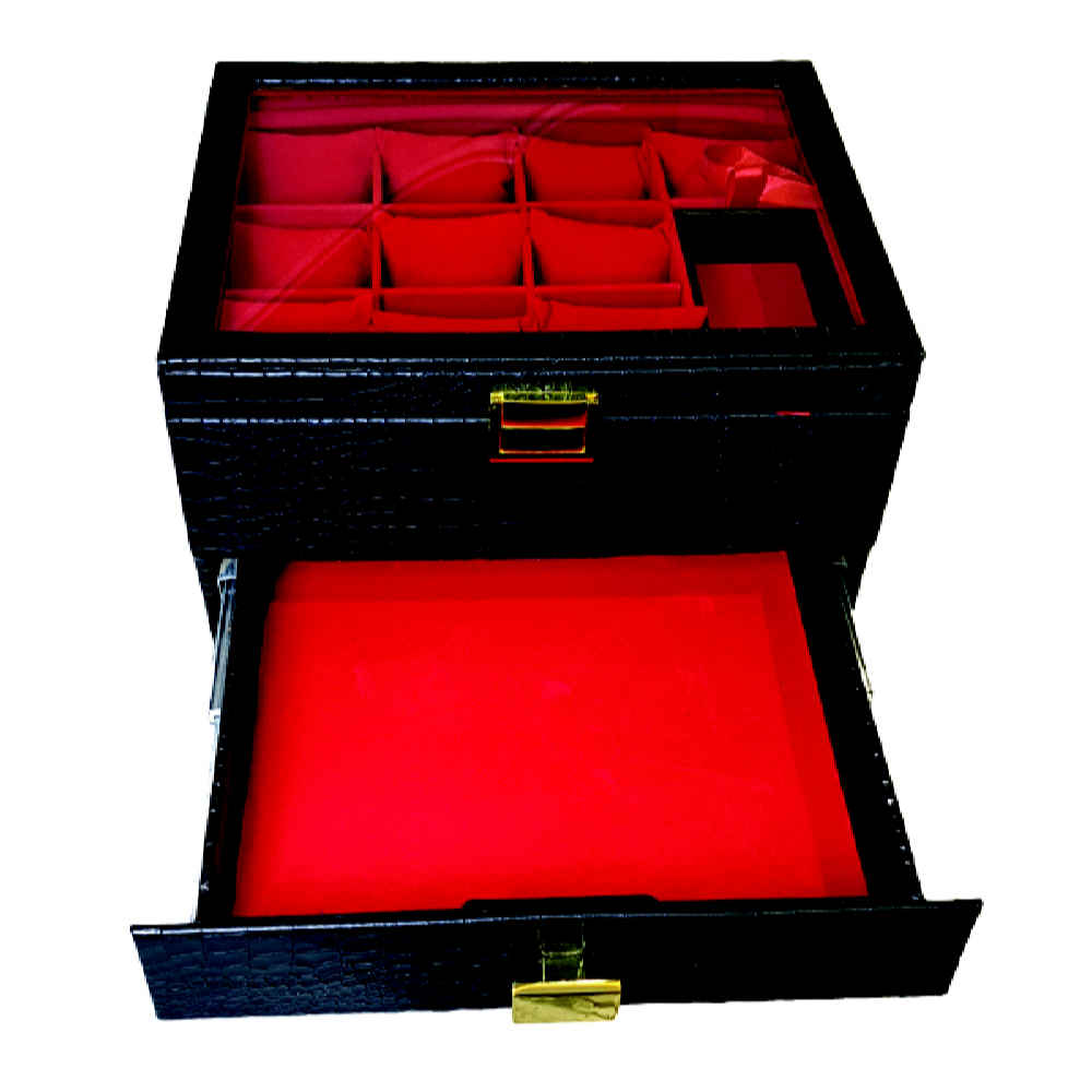 This Leather Watch Box redefines luxury in timepiece storage. Crafted with meticulous attention to detail, its sumptuous synthetic leather exterior exudes opulence and durability. The luxurious design is not just about aesthetics; it’s a statement of sophistication. With a capacity to house multiple watches, each compartment is carefully designed to cradle your timepieces securely. The leather not only adds a touch of elegance but also ensures lasting protection against scratches and dust. The sturdy closure guarantees the safety of your watches while showcasing a seamless blend of style and functionality. Elevate your watch collection with this Watch Box – a perfect marriage of opulent design and practical storage. Limited in quantity, boundless in refinement. Acquire yours now to indulge in the ultimate luxury for your cherished timepieces.