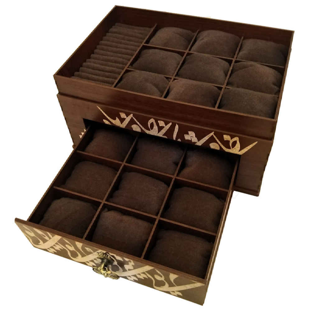 Introducing our Wooden Watch Box, a refined solution for organizing and showcasing your timepieces. Crafted from high-quality wood and adorned with a soft velvet lining, this watch box exudes sophistication, ensuring your watches are protected from scratches and dust. With 18 thoughtfully designed slots, each watch is cradled in its own compartment, allowing for safe storage and impeccable presentation. The spacious design accommodates watches of different sizes and styles, providing versatility for your collection. The sturdy and secure closure adds an extra layer of protection, ensuring your watches and rings are kept safe while remaining easily accessible. Elevate your storage experience with our Wooden Watch Box – a perfect blend of elegance and functionality.
