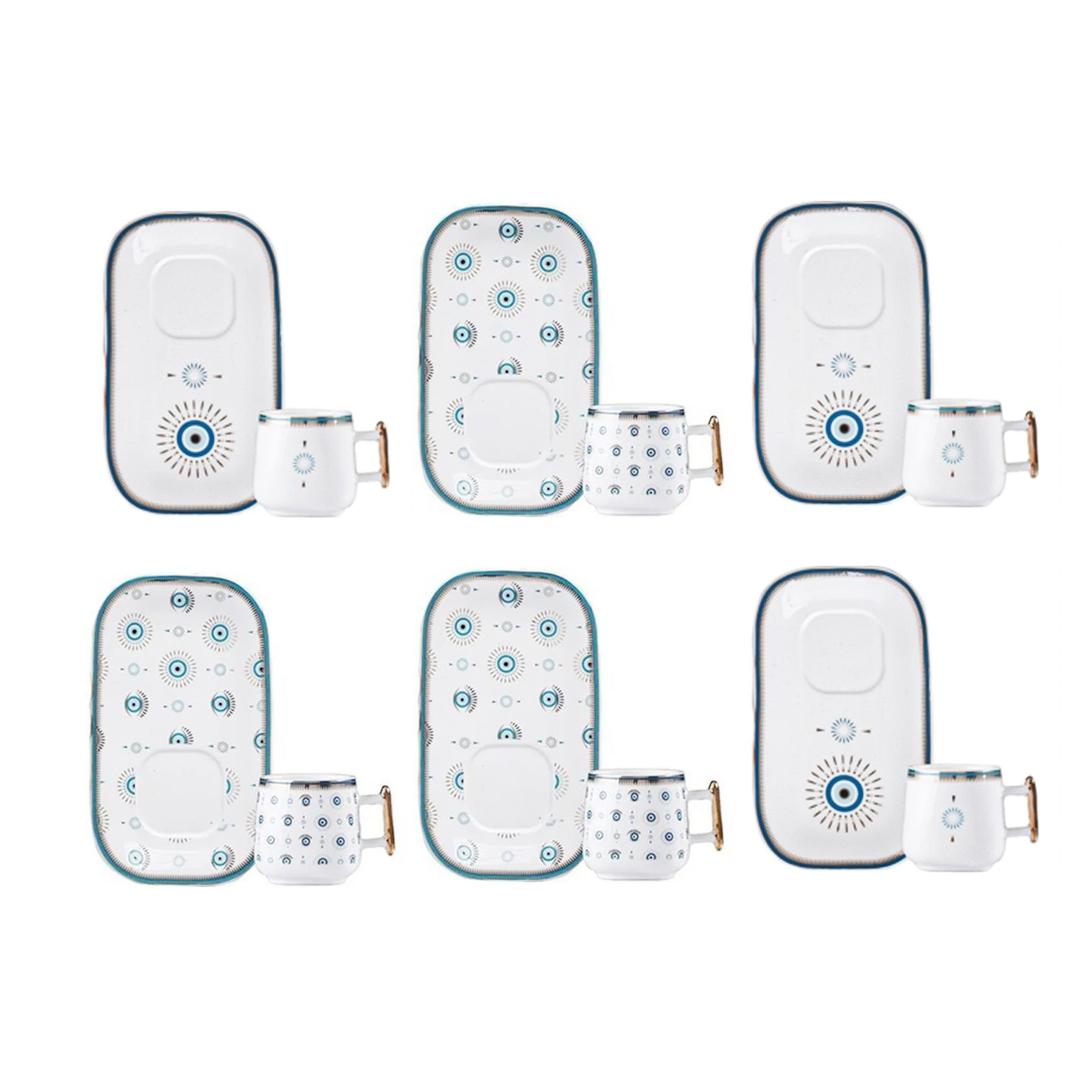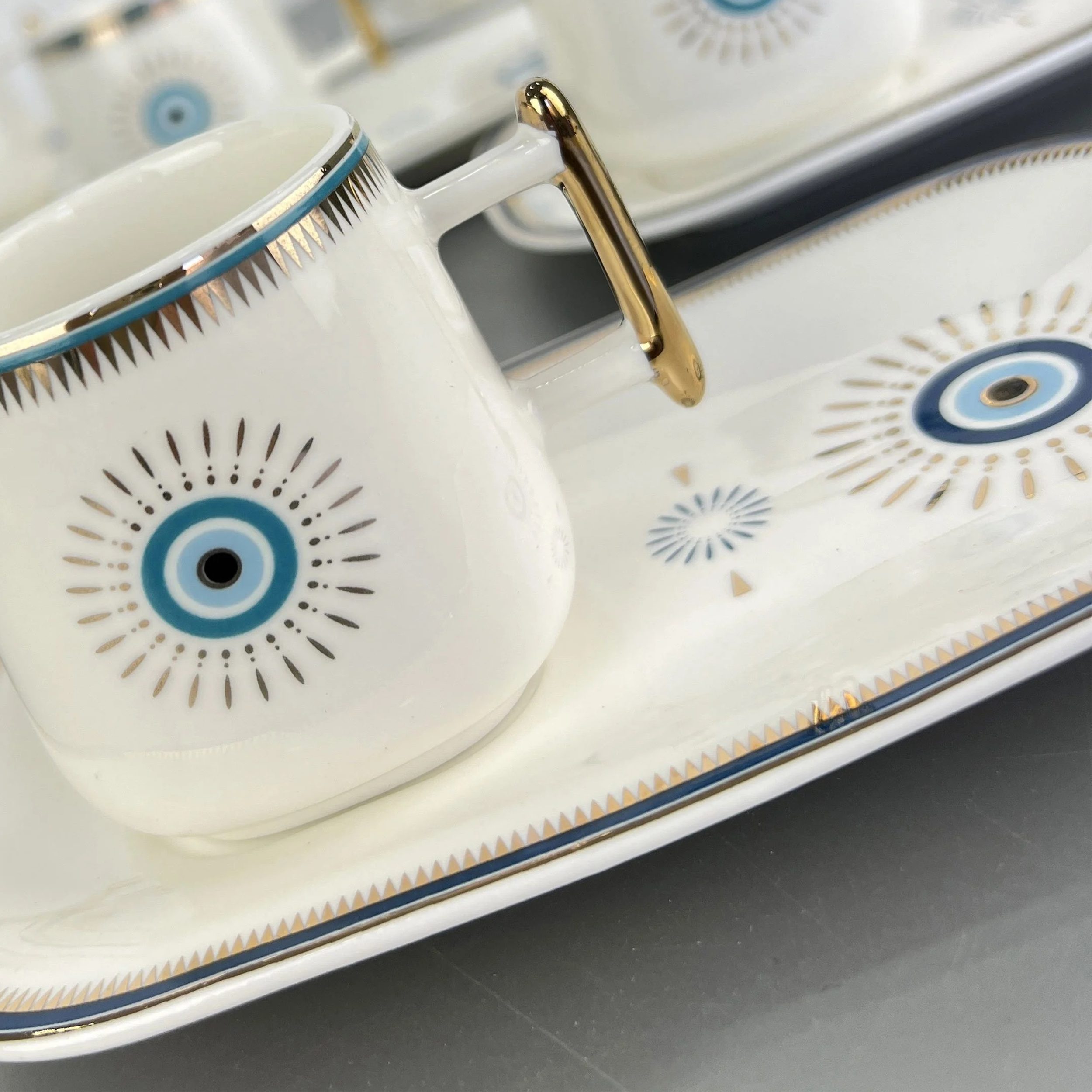 This exquisite Artistic Porcelain Tea Set showcases a blend of traditional elegance and cultural symbolism. Crafted in pristine white porcelain, each piece features intricate detailing of the evil eye design, known for warding off negative energy and bringing protection. The set includes a harmonious collection of cups, saucers, and teapots, perfect for serving tea. Delicate yet durable, the porcelain exudes sophistication while the vivid evil eye motif adds a touch of mystique. Ideal for gatherings or as a statement décor piece, this set effortlessly merges functionality with artistic craftsmanship, making it a timeless addition to any collection.