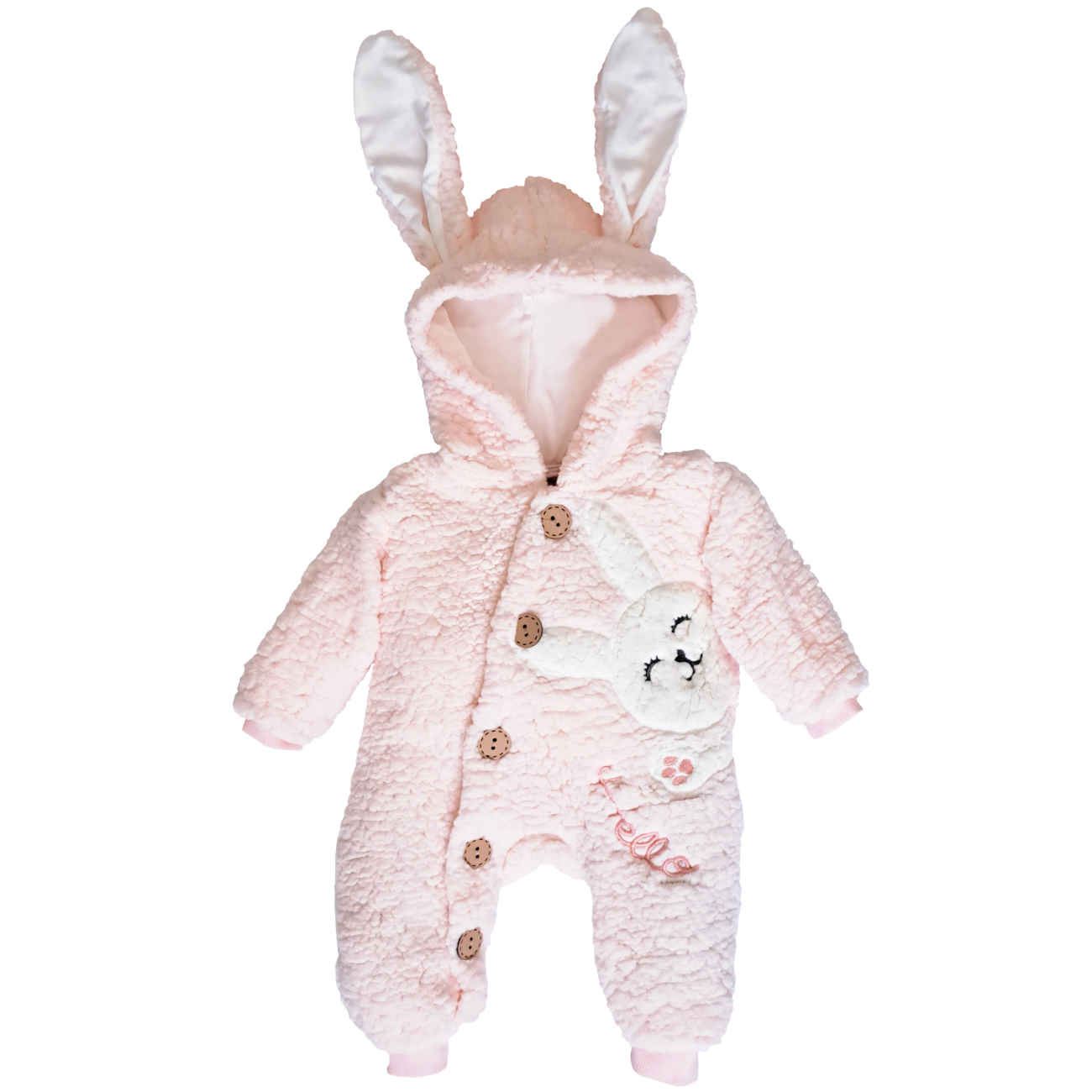 Introducing the Baby Girl’s Long Sleeve Jumpsuit with Bunny Ears, a delightful blend of comfort and cuteness. Crafted from ultra-soft, plush fabric, this jumpsuit ensures your little one stays warm and cozy, making it perfect for cooler days. The standout feature is the adorable hood with playful bunny ears, adding a whimsical touch that’s sure to bring smiles. The jumpsuit is designed with full-length sleeves and legs for complete coverage, keeping your baby snug from head to toe. A charming bunny patch on the front, along with decorative details like wooden buttons and embroidered accents, enhances the outfit’s sweet appeal. The soft pastel pink color adds to its gentle, feminine look, making it an ideal choice for special occasions or everyday wear. Easy to put on and take off, this jumpsuit combines practicality with irresistible style, perfect for your baby girl’s wardrobe.