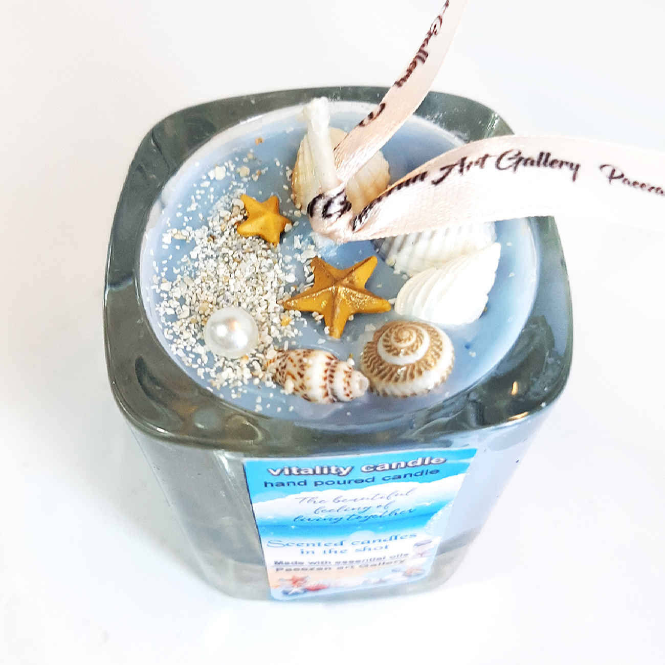 This handmade candle features a beautiful turquoise hue—a perfect balance between blue and green that evokes the refreshing spirit of clear tropical waters. Unlike a deep navy or bright blue, this shade is vibrant yet soothing, bringing a lively but calming energy to any space. The soft, glowing light shines through the delicate turquoise color, creating a peaceful ambiance that reminds you of gentle waves and sunny seaside afternoons. Its unique shade adds a pop of color without overwhelming the room, making it ideal for both modern and cozy settings. Carefully crafted for a steady and even burn, this candle not only brightens your space but also serves as a stunning decorative piece. Whether placed on a shelf, table, or windowsill, it effortlessly brings a fresh, ocean-inspired vibe to your home.