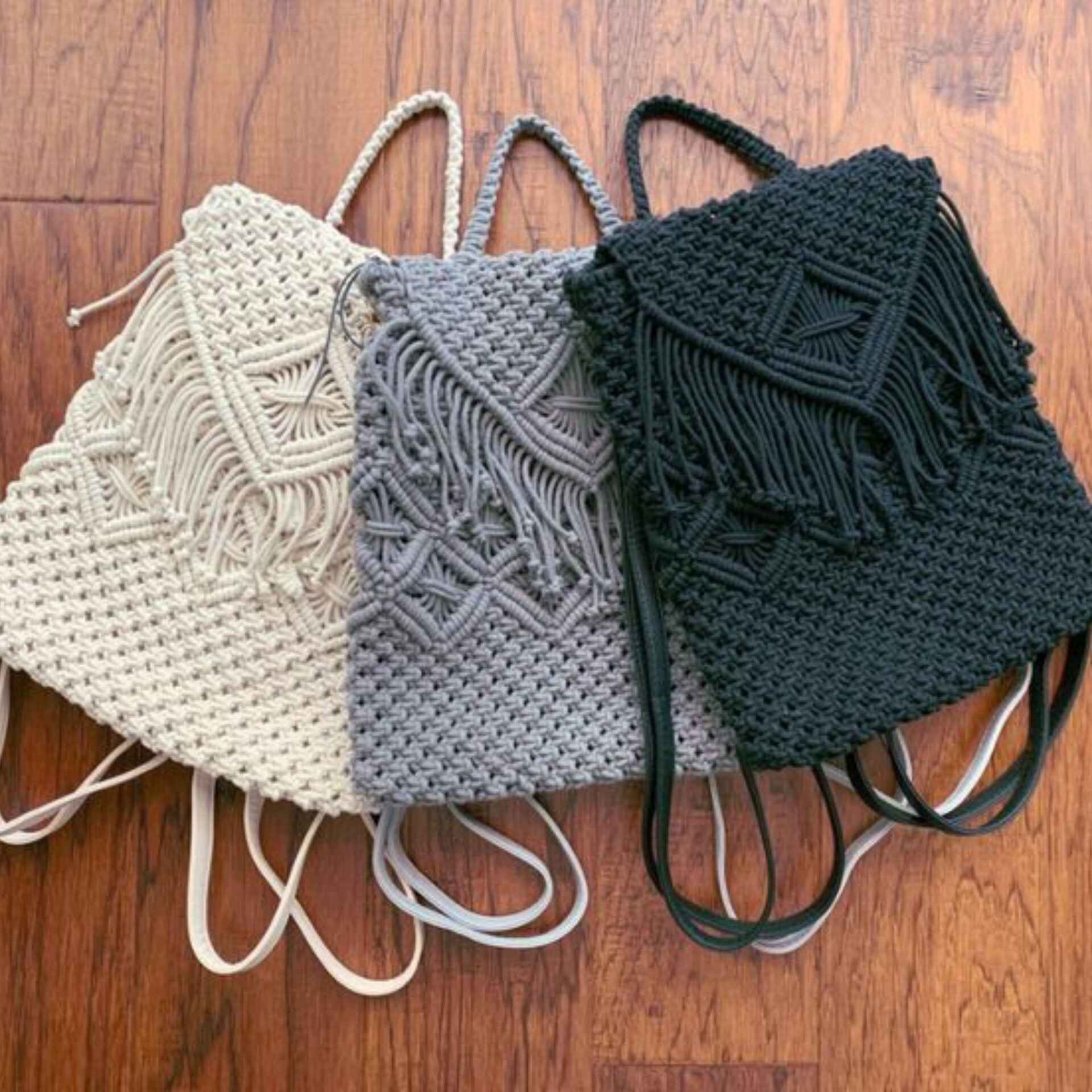 Embrace bohemian flair with our Handmade Boho Macramé Backpack, a stunning accessory crafted with meticulous care. This unique backpack features intricate macramé detailing, showcasing the artistry of hand-knotted designs in natural fibers. The spacious interior and adjustable straps combine practicality with style, making it perfect for carrying your essentials while adding a touch of boho chic to your ensemble. Ideal for both casual outings and artistic adventures, this macramé backpack offers a distinctive look that stands out from the crowd. Each piece is handmade, ensuring that you receive a truly one-of-a-kind accessory that reflects your individual style. Elevate your wardrobe with the enchanting beauty and craftsmanship of this boho backpack, and let it be your go-to for effortless, stylish carrying.