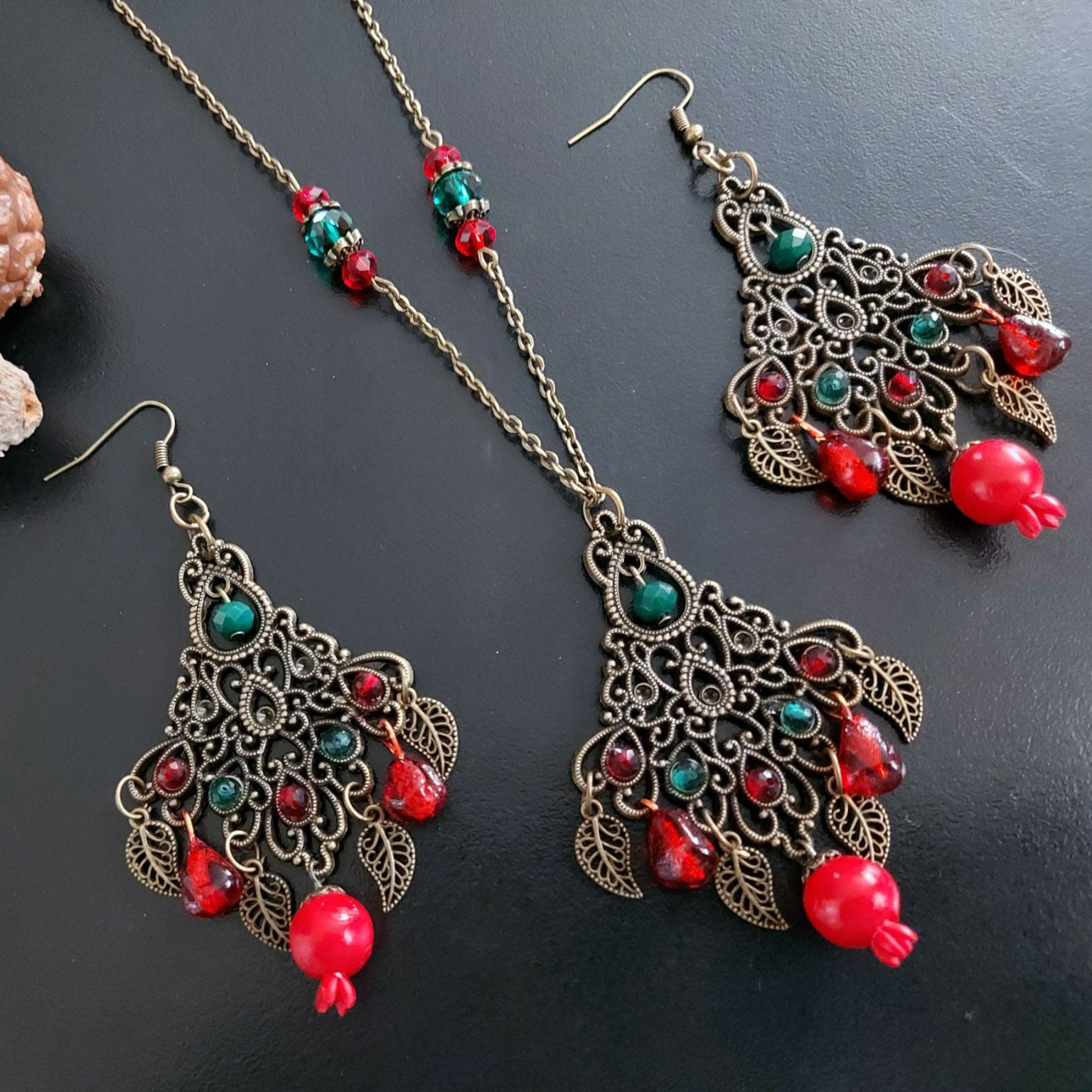 Price and Buy Bronze Jewelry Set Pomegranate and Bead Dangle