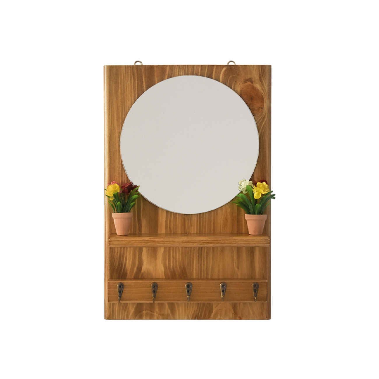 This beautifully crafted key holder combines natural wood tones with a built-in mirror, bringing both style and function to your home. Its warm brown finish complements a variety of interior styles, from rustic and farmhouse to classic and modern. Designed to keep your essentials organized, it features sturdy hooks for keys, lanyards, or small accessories. The mirror adds a practical touch, perfect for last-minute checks before heading out, while the wooden frame offers timeless charm. Easy to install and compact in size, this piece is ideal for entryways, hallways, or even bedrooms. Whether you’re looking to declutter your space or enhance your wall décor, it offers an elegant solution that blends utility with visual appeal.