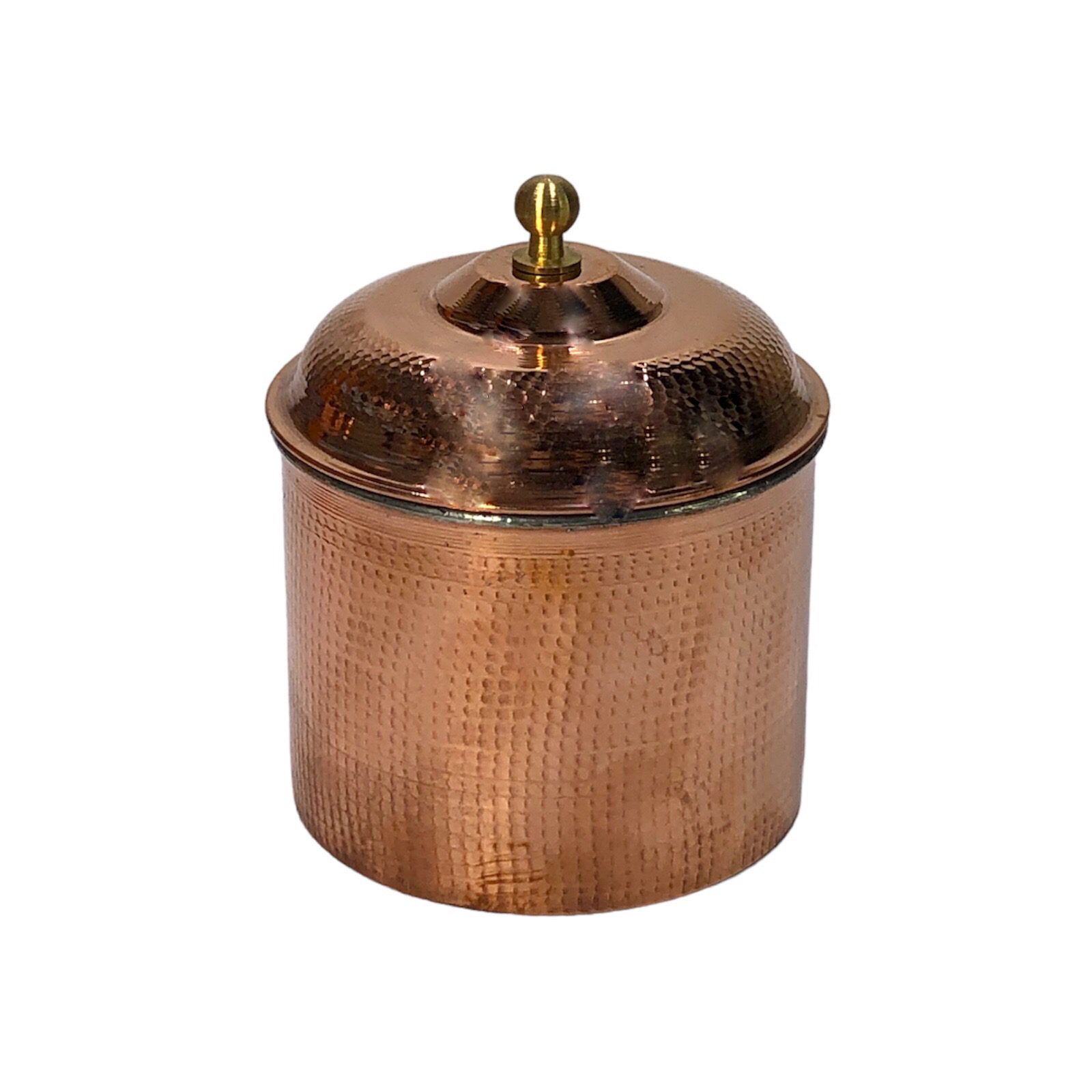 Elevate your kitchen with our handcrafted Copper Canister Jar, a stunning blend of artistry and utility. Meticulously hammered and crafted by Iranian artists, this singular jar brings a touch of cultural richness to your culinary space. Beyond its practicality for storing dry goods like coffee, tea, spices, and more, the hammered detailing adds a distinctive texture, turning the jar into a visual masterpiece that speaks to the skill and dedication of its creators. Each jar is not just a storage solution but a testament to the enduring craftsmanship of Iranian artists, making it a unique and elegant addition to your kitchen decor. Welcome the beauty of Iranian artistry into your home with this Copper Canister Jar, where tradition meets contemporary functionality in a captivating harmony.