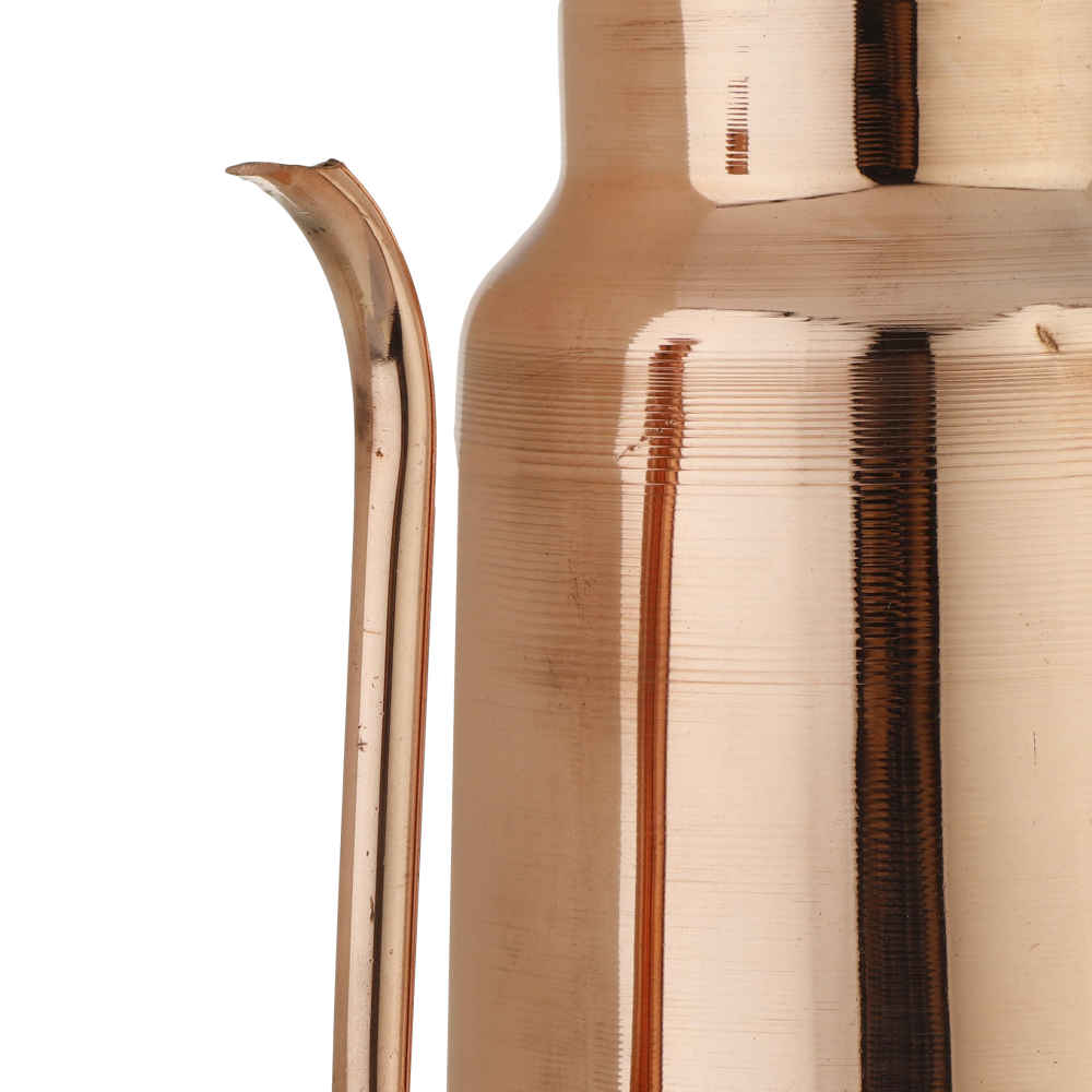 This beautiful oil cruet is made of copper metal. It has a long handle and also comes with a lid. The lid prevents contamination, and its long handle makes it easy to pick up and carry around. The shape of the oil cruet is also very unique and has a shiny surface. This surface gives a good effect to the environment and makes a stylish decoration for your kitchen.
