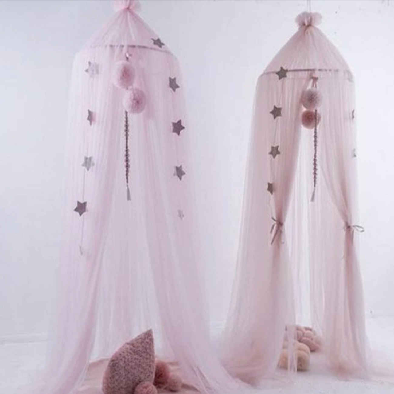 Bring a touch of elegance to your bedroom with this decorative single bed canopy. Made from high-quality polyester netting, it creates a light and airy atmosphere while adding a beautiful accent to your space. Designed with a circular top ring measuring about 52 cm and featuring cute pom-pom details, this canopy drapes gracefully around the bed. With a total length of 10 meters and a height of 2.70 meters, it provides full coverage for single beds while remaining stylish and functional. Perfect for use indoors or even in open spaces, this canopy is both practical and decorative. Whether you’re looking to refresh your bedroom décor or add a charming detail to your space, it combines simplicity, beauty, and comfort in one design.