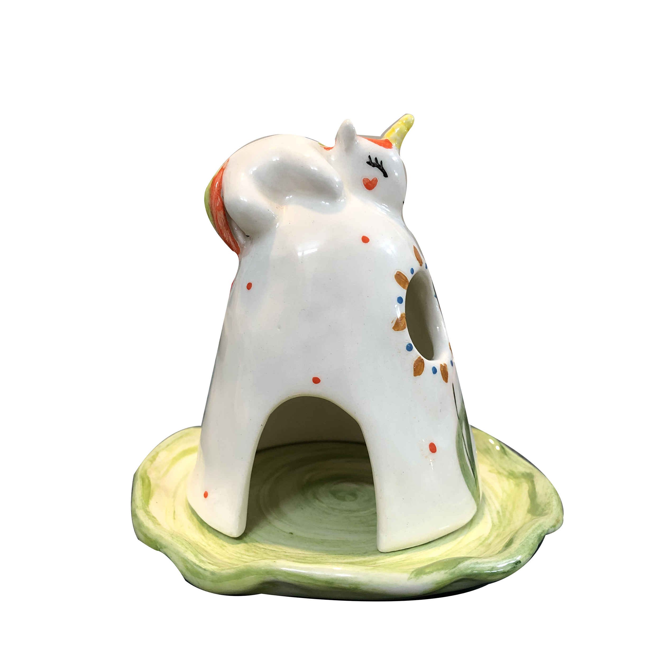 Add a touch of whimsy and magic to your home with our Ceramic Candle Holder with Unicorn Design. This enchanting piece is meticulously crafted from high-quality ceramic, featuring a delightful unicorn motif that brings a sense of wonder and charm to any space. The detailed design showcases the unicorn’s graceful form, making it a captivating decorative item even without a candle. Beyond its charming appearance, our Ceramic Candle Holder with Unicorn Design is also highly functional. The sturdy ceramic construction ensures durability, while the whimsical unicorn design inspires joy and imagination. This unique candle holder is not only a beautiful addition to your home but also a thoughtful gift for birthdays, holidays, or special occasions, bringing a little bit of magic into the lives of those you care about.