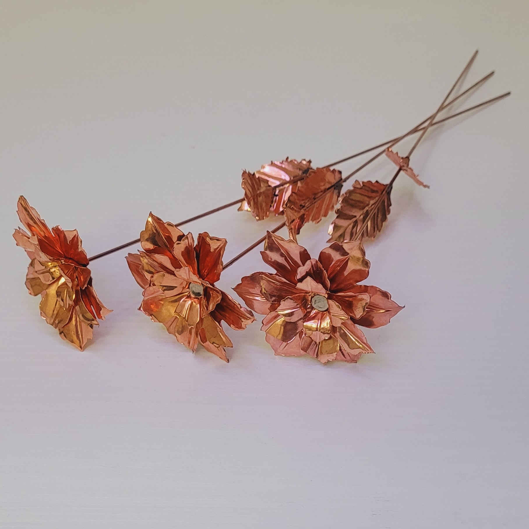 Crafted with intricate artistry, this Persian copper flower is a stunning addition to any home décor. Each piece reflects the rich heritage of Persian design, with delicate details and a timeless elegance. The gleaming copper finish radiates warmth and sophistication, making it a versatile accent for modern and traditional interiors alike. Perfect for creating a focal point in living rooms, dining areas, or entryways, it harmonizes effortlessly with various color schemes and textures. The flower’s meticulous craftsmanship ensures durability while maintaining its aesthetic charm. Whether displayed individually or as a set of five, these decorative flowers offer endless styling possibilities. Arrange them as a centerpiece, mount them on walls, or pair them with other décor elements for a cohesive look. Ideal for gifting, they bring a touch of cultural elegance to any occasion. Transform your space with the timeless beauty and allure of Persian copper artistry.