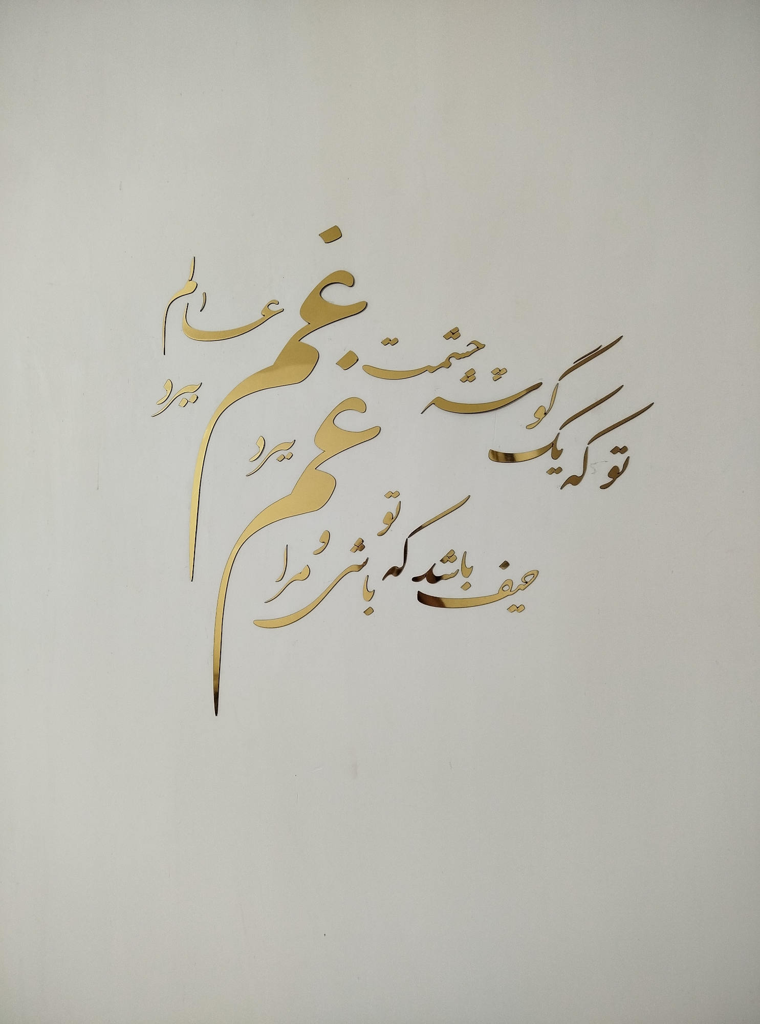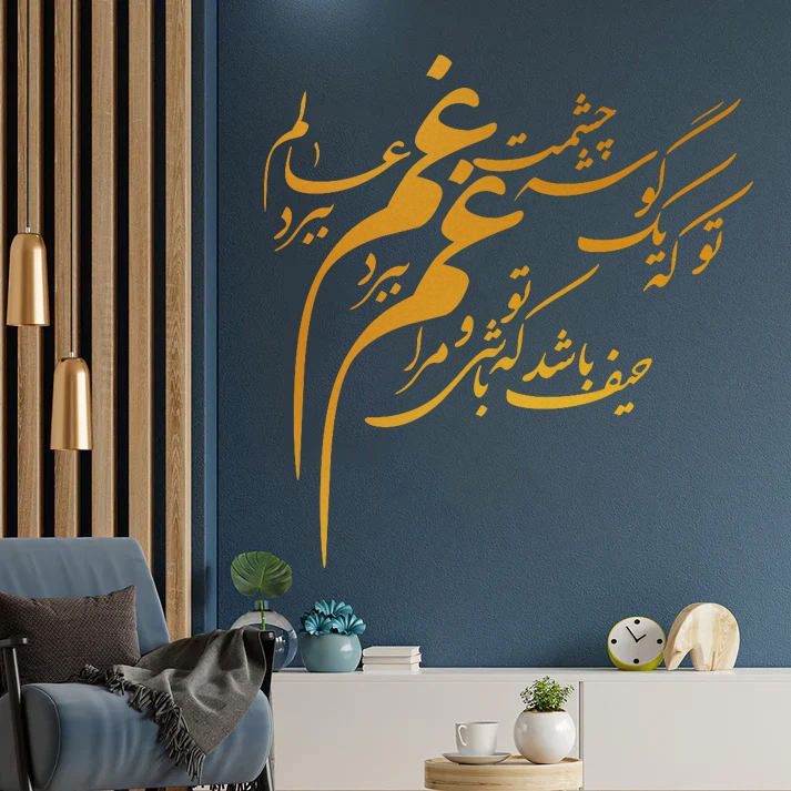 Add a romantic touch to your home with our Decorative Persian Poem Plexiglass Mirror Set – “Gham Cheshmat”. This exquisite 53-piece wall mirror set combines modern decorative style with the elegance of Persian calligraphy. Made from high-quality glossy multi-style plexiglass, each mirror piece beautifully reflects light and emotion, creating a poetic atmosphere in your space. The design features a romantic Persian verse, making it an ideal choice for bedrooms, living rooms, or any wall that deserves a touch of love and inspiration. The pieces are lightweight, waterproof, and easy to install with double-sided adhesive backing.