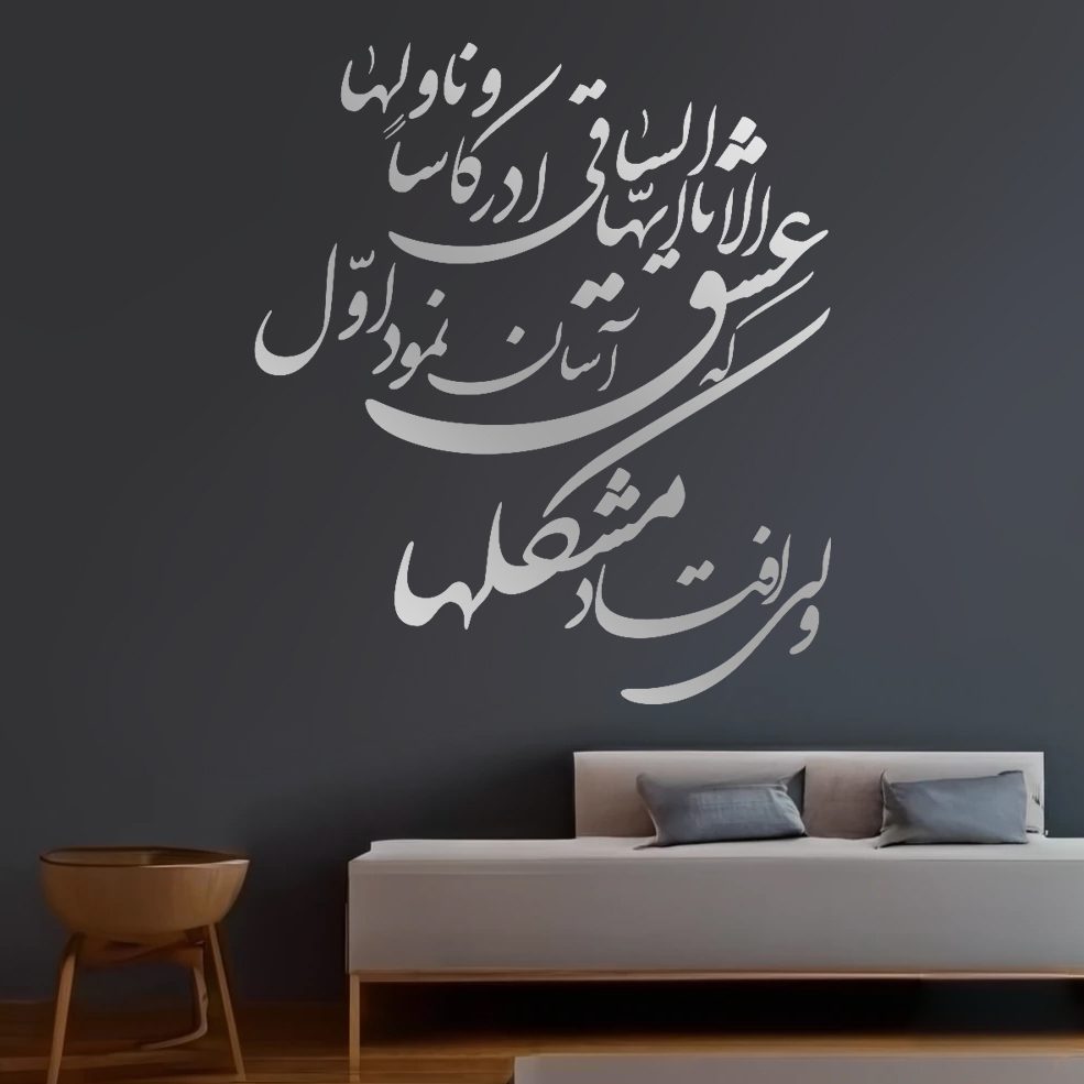 Add a romantic touch to your home with our Decorative Plexiglass wall Mirror Set – Hafez Poem “Elaa Ya Eyha Saghi”. This elegant 55-piece wall mirror set blends contemporary decorative style with the timeless beauty of Persian poetry. Made from high-quality glossy multi-style plexiglass, each mirror piece beautifully reflects light and emotion, creating a poetic and inviting atmosphere in your space. The design features a heartfelt Persian verse, making it an ideal choice for bedrooms, living rooms, or any wall that deserves a touch of love and inspiration. The pieces are lightweight, waterproof, and easy to install with double-sided adhesive backing.