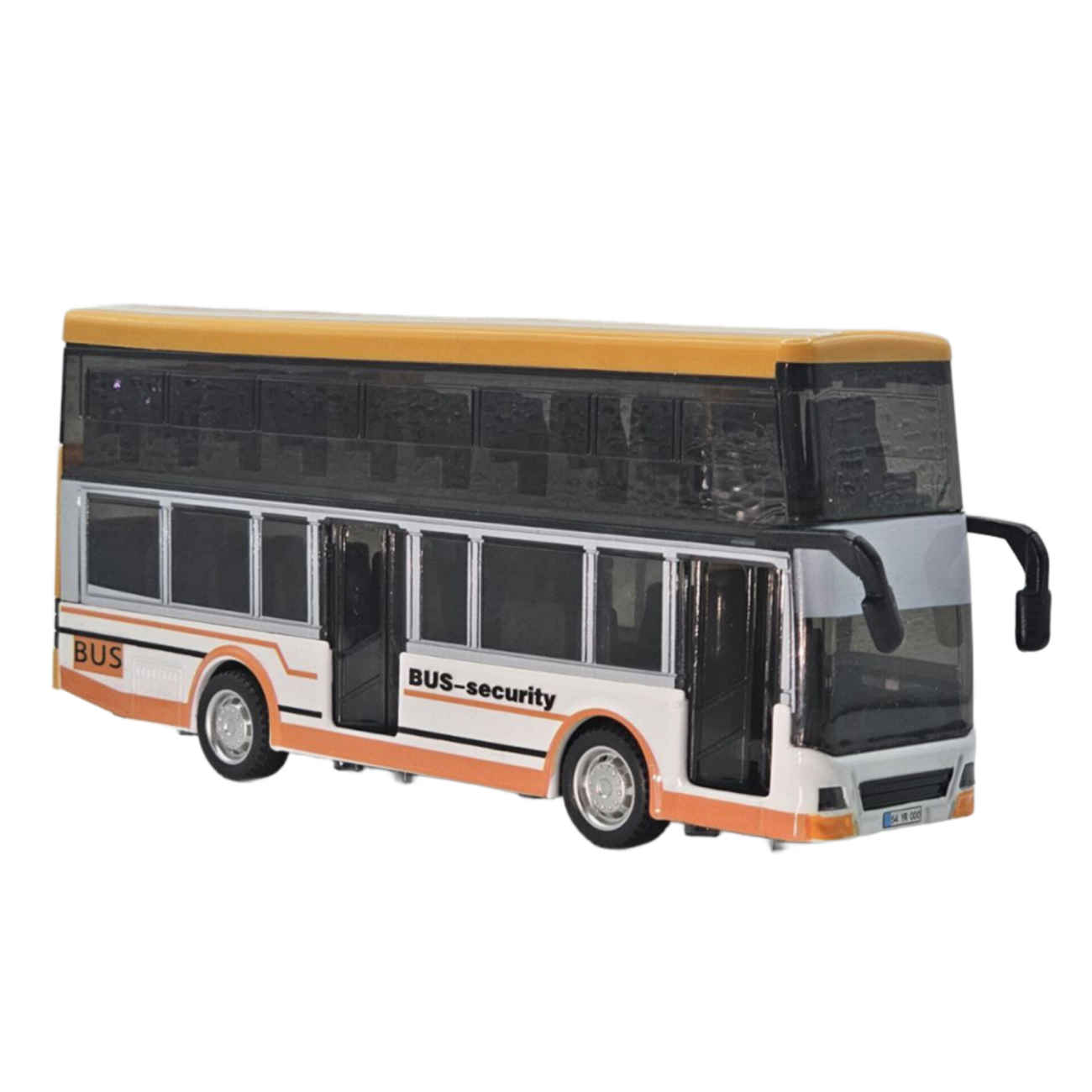 Introduce your child to the charm of classic double-decker city buses with this Die-Cast Metal Double-Decker Bus Toy. Crafted from sturdy metal, this miniature replica is designed to withstand rough play, making it both durable and long-lasting.Featuring a true two-level design, the bus offers realistic details including opening doors, musical sounds, and working lights that enhance the play experience. Powered by a pull-back mechanism, the bus zooms forward effortlessly after being pulled back, adding an exciting interactive element. Beyond just being a fun toy, this double-decker bus serves as an educational tool to familiarize children with public transportation and iconic city vehicles. It also makes a wonderful keepsake or gift, reminiscent of the famous buses found in London and other metropolitan cities.