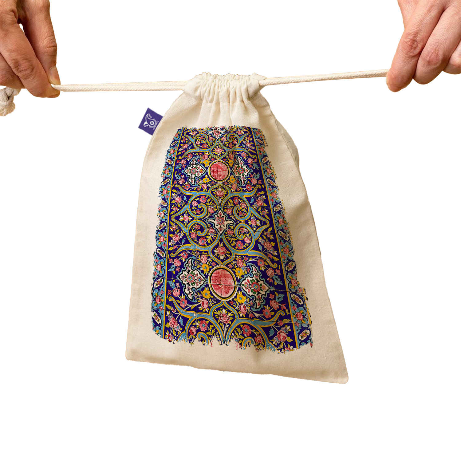 Weight 20 g Dimensions 20 × 20 cm Material Calico Fabric Product Type Cotton Storage Bag Pattern Persian Tile Color Cream Shape Square Style Contemporary Condition New Closure Style Drawstring