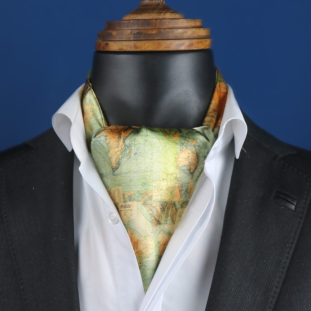 Price and Buy Elegant Ascot tie – Ideal for Event & Ceremony with Earth Map Pattern in Green