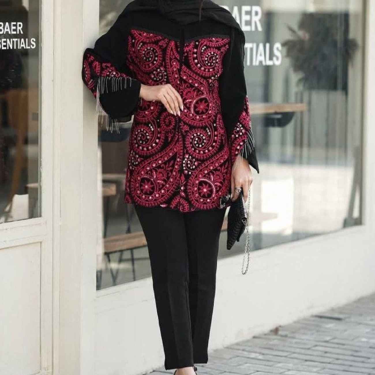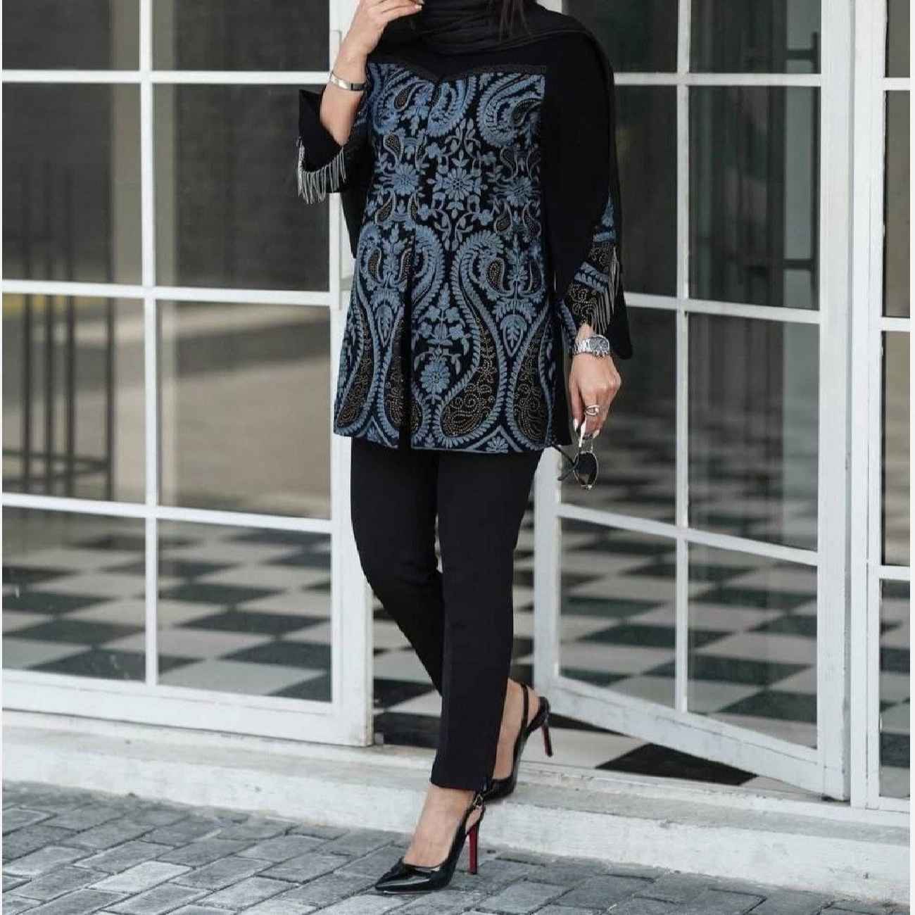 This exquisite Iranian manto set is a celebration of timeless Persian elegance, carefully designed to reflect both cultural heritage and contemporary sophistication. The silhouette gracefully combines modesty and modern tailoring, making it a versatile choice for both formal gatherings and everyday wear. Crafted with premium fabric, it offers both comfort and durability, ensuring you look effortlessly refined in any setting. At the heart of this design is the traditional Boteh Jeghe pattern—an iconic Persian motif symbolizing life, eternity, and growth. The intricate detailing showcases centuries-old craftsmanship, brought to life through modern techniques that highlight the beauty of this historic design. Rich yet understated, the pattern adds a meaningful and artistic dimension to the ensemble. Ideal for those who appreciate cultural depth and refined aesthetics, this manto set offers more than just fashion—it tells a story. Whether you’re attending a cultural event or simply wish to make a graceful impression, this piece allows you to connect with the elegance of Persian tradition in a way that feels both fresh and enduring.
