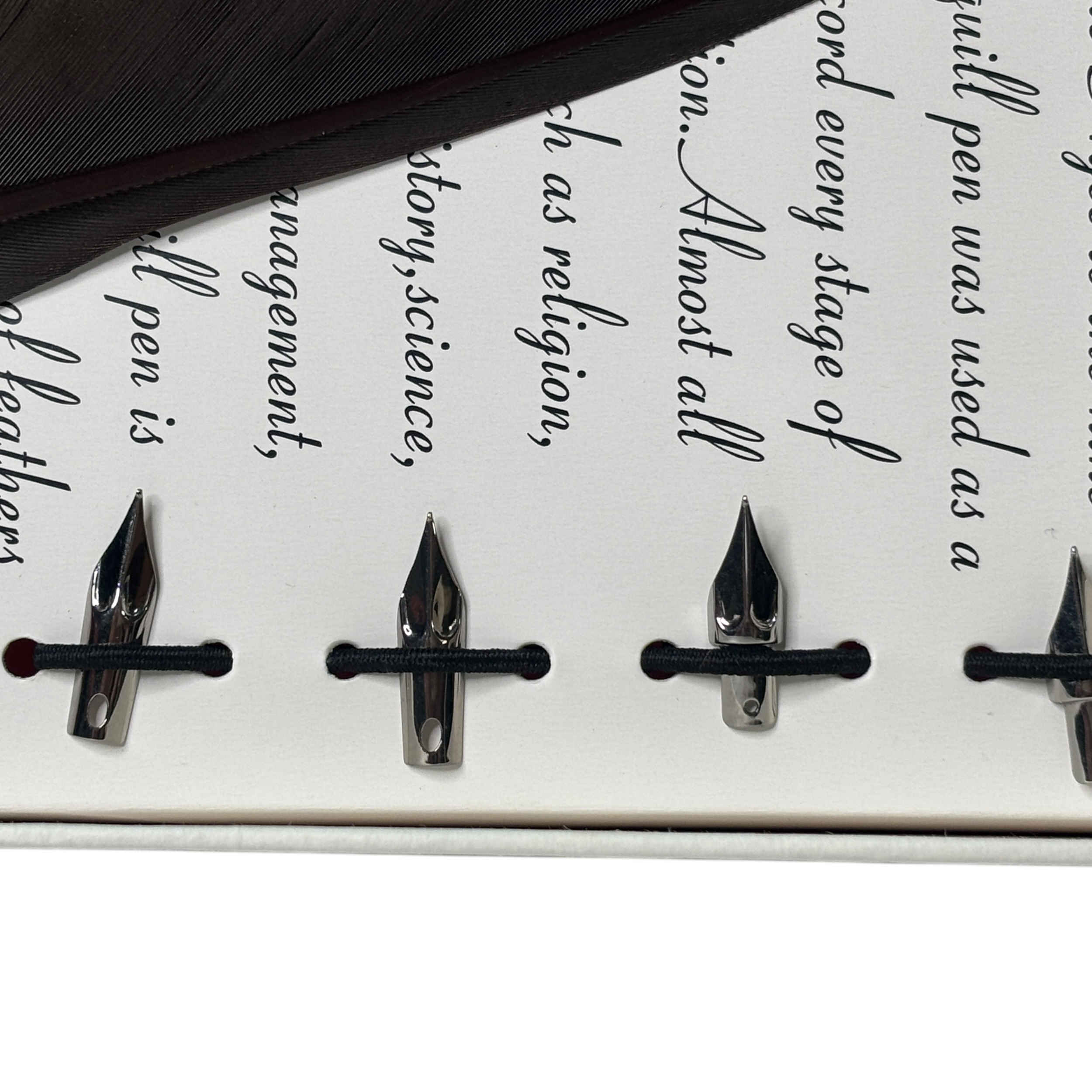 • Set Includes: Feather Pen, Metal Nib, Inkwell and Base