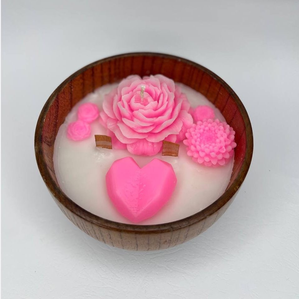 Crafted with love and care, this handmade candle set captures the essence of romance through its elegant heart-shaped design and the timeless allure of red roses. Each candle is uniquely created to evoke warmth and affection, making it a beautiful addition to intimate dinners, cozy nights, or as a thoughtful gift for someone special. The soft glow from the flame gently illuminates the rose detailing, enhancing the ambiance of any setting. The candles are nestled in charming, rustic wooden bowls that add a natural touch to the design. These bowls are carefully selected and finished to complement the romantic aesthetic while also being reusable or decorative even after the candles are used. The pairing of natural wood with delicate floral artistry creates a striking balance of rustic charm and romantic elegance. This set of two is perfect for sharing – whether as a symbol of love between partners, or simply to spread a little more warmth around your space. Ideal for anniversaries, Valentine’s Day, or just to elevate everyday moments, these handmade candles are more than decor—they’re a heartfelt experience.