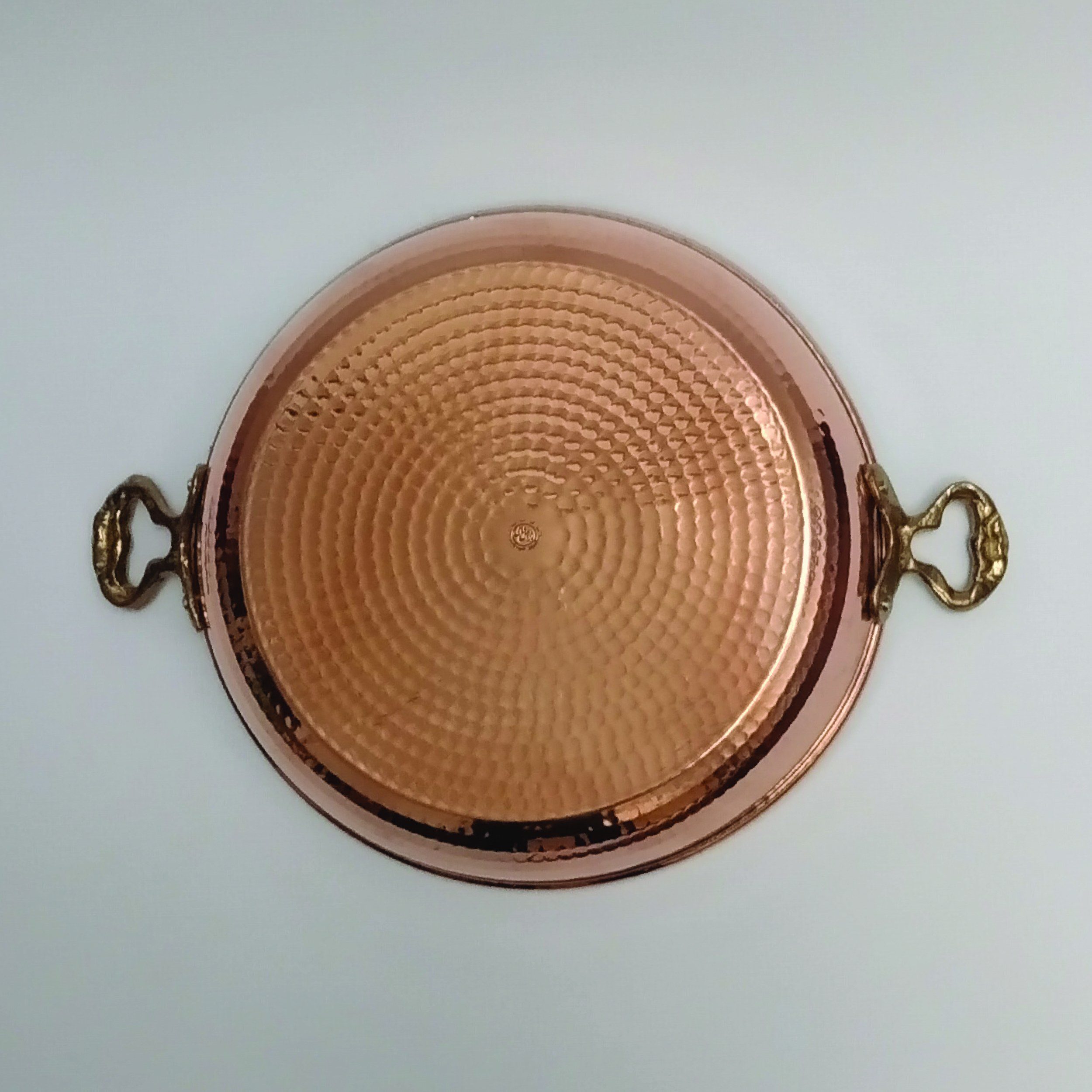 This exquisite hammered copper frying pan brings elegance and functionality to your kitchen. Crafted from high-quality Persian copper, it features a stunning hammered texture that not only enhances its aesthetic appeal but also ensures even heat distribution for perfect cooking results. The pan’s non-reactive surface is ideal for preparing a variety of dishes, from delicate eggs to seared meats. The sturdy handle offers a comfortable grip, and the classic design is both practical and stylish. Perfect for both everyday use and special occasions, this frying pan combines traditional craftsmanship with modern convenience. Ideal for those who appreciate fine cookware and timeless design.