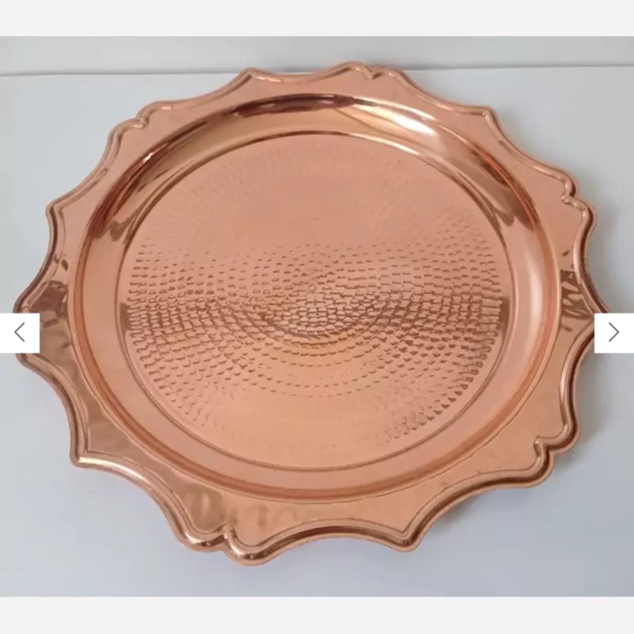 Immerse yourself in the timeless allure of our Copper Serving Tray, meticulously handcrafted by skilled Persian artisans with a hammering theme. This exquisite tray exudes an elegant blend of tradition and craftsmanship, making it a unique addition to your hosting essentials. Its versatility allows for serving tea, presenting an array of coffee assortments, or displaying an assortment of delectable treats, each moment accentuated by the tray’s cultural richness. Crafted by skilled hands, this copper tray stands as a masterpiece of artistry and functionality. Its hammered design not only brings an element of sophistication but also adds a touch of authenticity to your serving experience, showcasing the intricate workmanship passed down through generations of Persian artisans. Indulge in the cultural heritage and the timeless elegance that this handcrafted serving tray offers, promising to be a captivating centerpiece for your tea or coffee presentations.