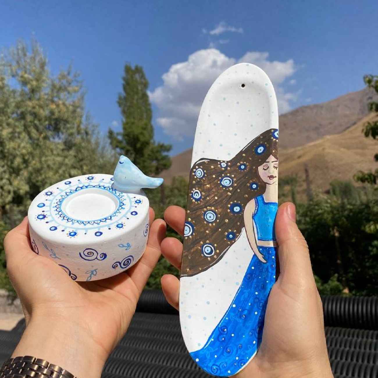 Price and Buy Hand-painted Pottery Incense Holder with Evil Eye Design, Washable & Acrylic Paint