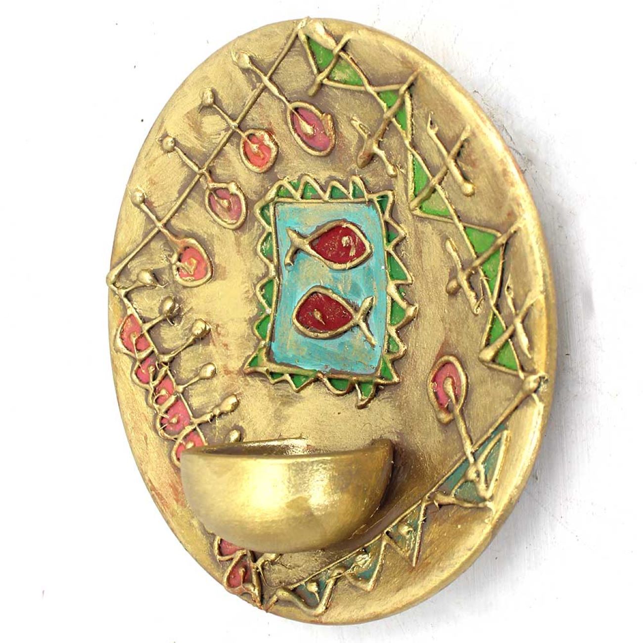 Introduce an air of exotic elegance to your space with our Pottery Tealight Wall Sconce, adorned with intricate Persian patterns meticulously crafted by skilled Iranian artists. Each sconce is a testament to centuries of Persian artistic tradition, marrying exquisite craftsmanship with timeless design. Whether hung in your living room, hallway, or bedroom, this sconce casts a mesmerizing glow, creating a captivating ambiance that transports you to a world of opulence and refinement. Let this exquisite piece be a striking focal point in your décor, adding a touch of cultural richness and artistic flair to your home.
