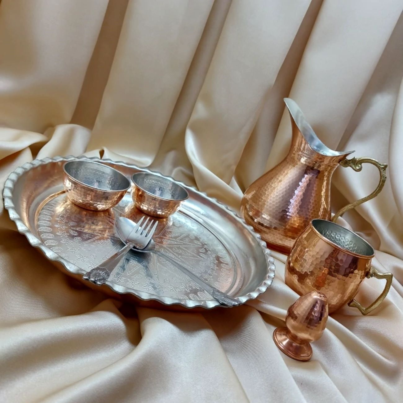 Elevate your dining experience with the Handcrafted Copper Dinner Plate – Traditional Persian Plate for Elegant Dining and Serving. Meticulously hand-hammered by skilled artisans, this plate showcases the rich heritage of Persian craftsmanship. The warm, lustrous copper finish adds a touch of timeless elegance to any table setting, perfect for both everyday meals and special gatherings.Its sturdy construction ensures durability while offering a smooth surface ideal for serving main courses, appetizers, or desserts. The plate’s classic design makes it suitable for Persian cuisine as well as international dishes. Handcrafted in Zanjan, Iran, this artisan piece combines beauty with functionality.It’s also a unique gift choice for weddings, housewarmings, and cultural celebrations. Over time, the copper naturally develops a beautiful patina, adding character to the plate. Easy to clean and built to last, this dinner plate is a true blend of tradition and sophistication. Add an authentic touch to your dining table with this elegant copper tableware.