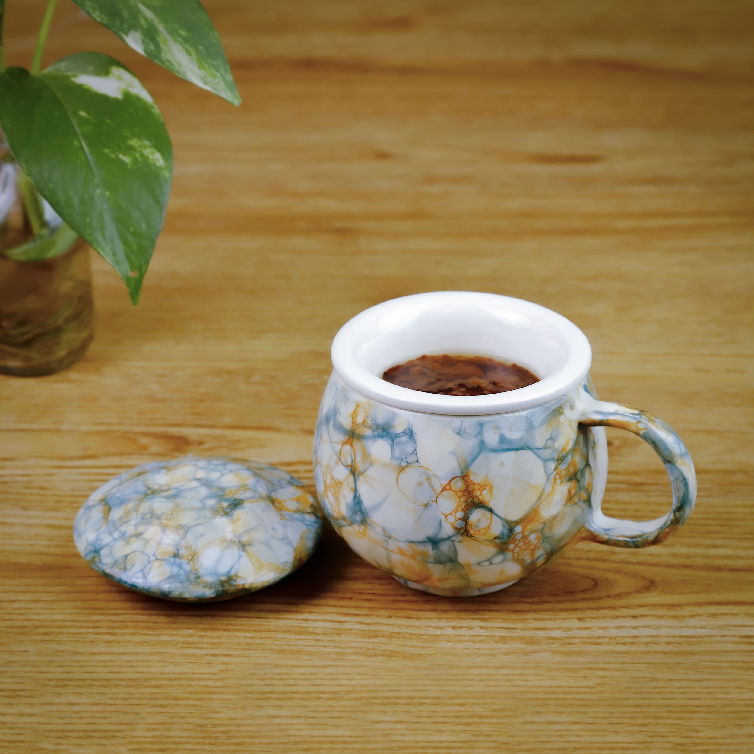 This beautifully crafted ceramic mug features a delicate watercolor design that brings an artistic touch to your daily coffee or tea ritual. Each piece is handmade, ensuring that every mug is unique with subtle variations that showcase the artisan’s skill and creativity. The smooth ceramic surface highlights the soft, flowing colors of the watercolor pattern, creating a calming and elegant aesthetic. Its comfortable handle and balanced shape make it easy to hold, perfect for enjoying your favorite hot beverages in style. Durable and practical, this mug is microwave and dishwasher safe, combining beauty with everyday convenience. It also makes a thoughtful gift for art lovers and anyone who appreciates handcrafted quality and charming design.