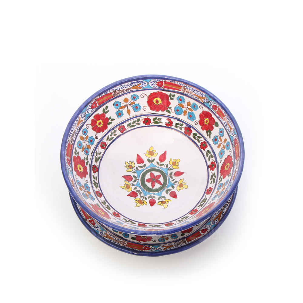 Experience the exquisite artistry and cultural richness woven into our handmade pottery bowl, meticulously crafted by Iranian artisans using the wheel-thrown technique and fine clay. Classified as a decorative bowl, this masterpiece effortlessly embodies ornamental splendor while boasting an inherent functionality that elevates its artistic value. Beyond its designation as a decorative piece, this bowl transcends mere ornamentation, fusing artistry with utility. As a striking display item, it radiates cultural elegance and craftsmanship, yet its versatile nature extends its artistic value by seamlessly fitting into various settings, whether as a standalone centerpiece or as part of an artful arrangement, infusing spaces with sophistication and cultural significance.