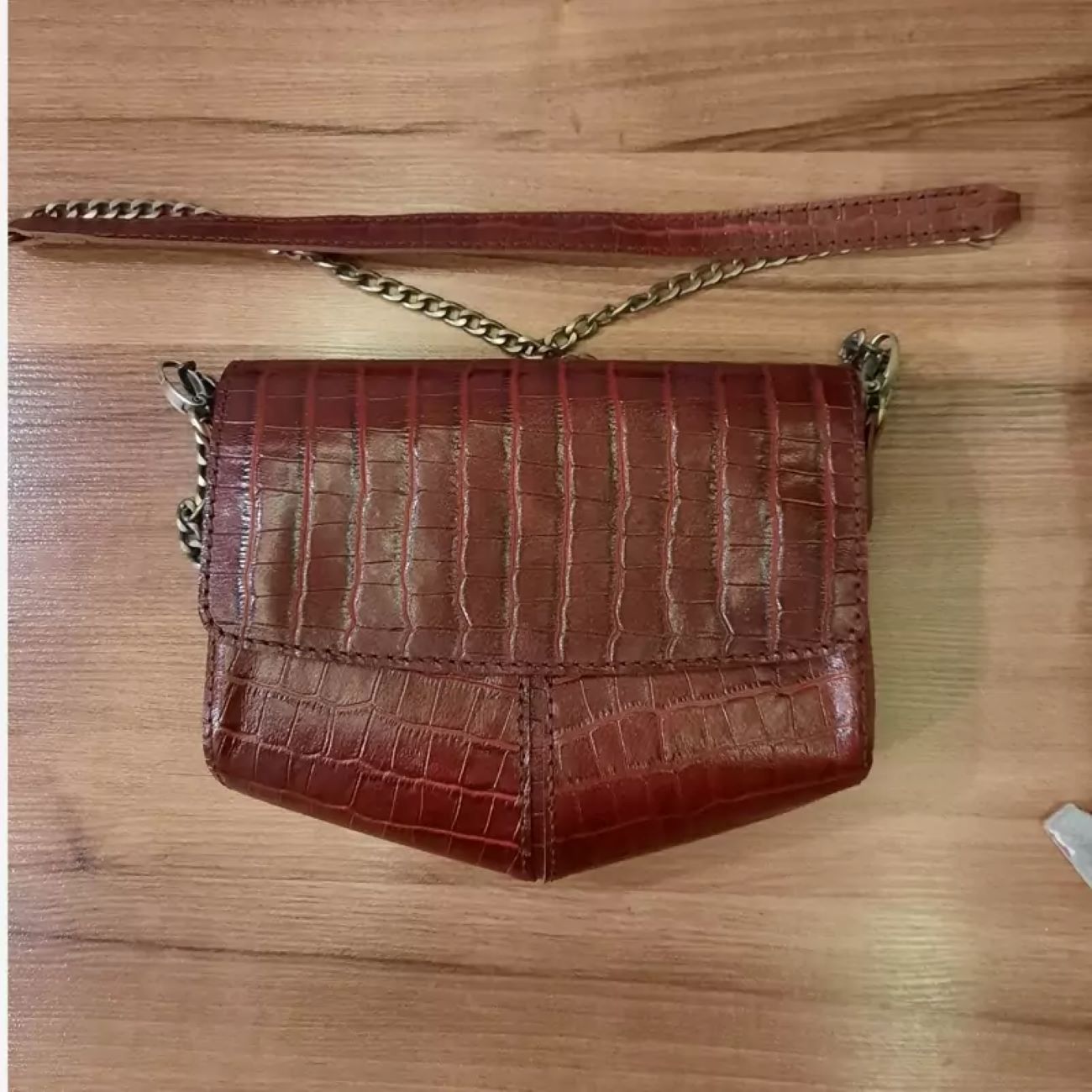 Crafted with precision and care, this Handmade Real Leather Chain Strap Bag combines timeless elegance with durability. Made from premium genuine leather, it promises a luxurious feel and long-lasting quality. The sleek, versatile design is perfect for any occasion, whether casual or formal. The chain strap adds a chic, edgy touch, while ensuring comfort and ease while carrying. The spacious interior offers ample room for your essentials, keeping them organized and accessible. Each bag is uniquely crafted, showcasing impeccable craftsmanship. Available in various colors, it complements any wardrobe. A must-have accessory for fashion-forward individuals. Treat yourself or gift someone special with this beautifully made leather bag. Elevate your style effortlessly with this classic piece.