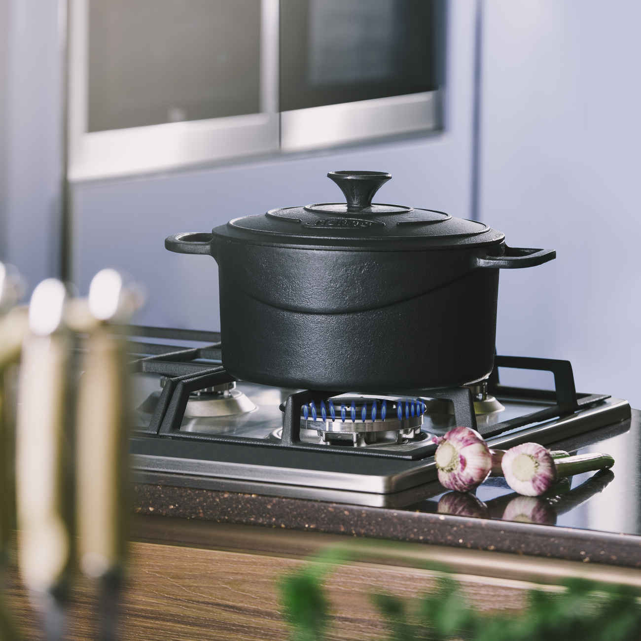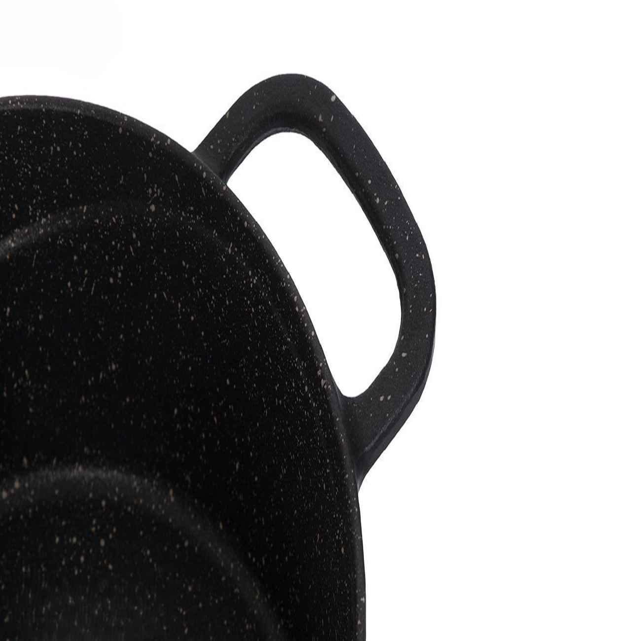 Crafted from premium cast iron, this durable cooking pot is built to deliver exceptional heat retention and even cooking. Its heavy-duty construction ensures consistent results, making it a versatile addition to any kitchen. From stovetop to oven, it’s designed to handle a variety of cooking techniques with ease. The smooth, enamel-coated interior prevents sticking and makes cleanup simple, while the sturdy handles provide a secure grip for effortless transfers. Its generous capacity is ideal for preparing family-sized meals, whether you’re simmering hearty stews, slow-cooking tender meats, or creating rich, flavorful soups. Timeless and reliable, this pot combines classic design with modern functionality. It’s perfect for home chefs who value quality cookware that lasts for years, helping you create dishes that are as comforting as they are delicious.