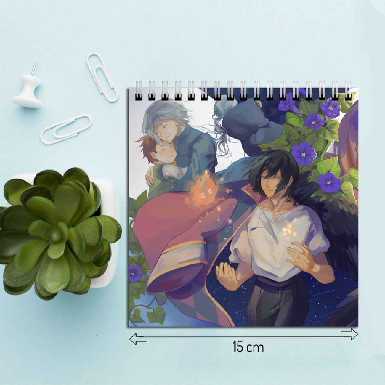 This Howl’s Moving Castle themed sketchbook is the perfect companion for any artist or anime fan. With dimensions of 15x15x2 cm, it offers a convenient and portable size, making it easy to carry around wherever you go. The hardcover is made from durable 300g cardboard, providing a sturdy and protective cover for your artwork. Inside, the sketchbook features cream-colored paper with the right thickness, ideal for both drawing and painting. The paper, being thick enough, allows you to use various art tools, including watercolors, without worrying about bleed-through. Its color is also perfect for white highlights and lighter details, making it versatile for a variety of artistic techniques. The UV-printed design on the cover ensures the artwork stays vibrant and well-preserved over time, while the saddle stitch binding ensures the book holds together securely and lays flat when in use. Whether you’re sketching or painting, this sketchbook is designed to provide a premium experience with each page. With its vertical binding format (FC size), sturdy build, and suitable paper, this sketchbook offers the ideal space for creating beautiful art inspired by the enchanting world of Howl’s Moving Castle.