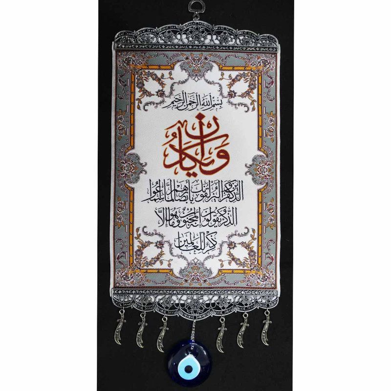 This Islamic wall hanging is adorned with a beautiful design featuring the Wa In Yakad, a revered throne verse from the Quran. It is intricately embellished with Evil Eye amulet, adding a touch of elegance to any space and it is believed that it protects and removes negative energy. The Wa In Yakad holds profound spiritual significance in Islam, making this wall decor not only aesthetically pleasing but also spiritually enriching. This piece serves as a constant reminder of faith, grace, and protection for those who display it. Whether in a home or place of worship, this Islamic wall hanging brings a sense of tranquility and connection to the divine, making it a cherished addition to any interior.