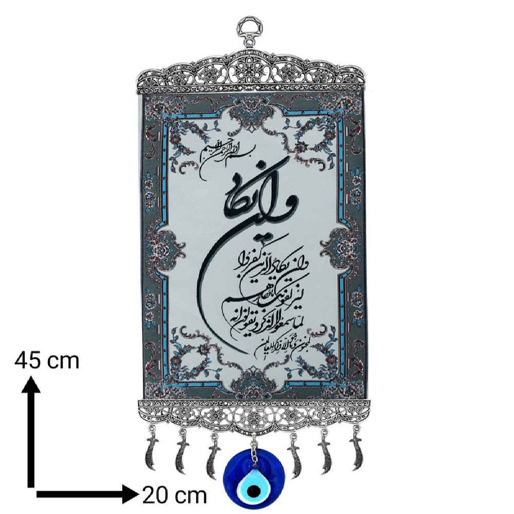 This Islamic wall hanging is adorned with a beautiful design featuring the Wa In Yakad, a revered throne verse from the Quran. It is intricately embellished with Evil Eye amulet, adding a touch of elegance to any space and it is believed that it protects and removes negative energy. The Wa In Yakad holds profound spiritual significance in Islam, making this wall decor not only aesthetically pleasing but also spiritually enriching. This piece serves as a constant reminder of faith, grace, and protection for those who display it. Whether in a home or place of worship, this Islamic wall hanging brings a sense of tranquility and connection to the divine, making it a cherished addition to any interior.