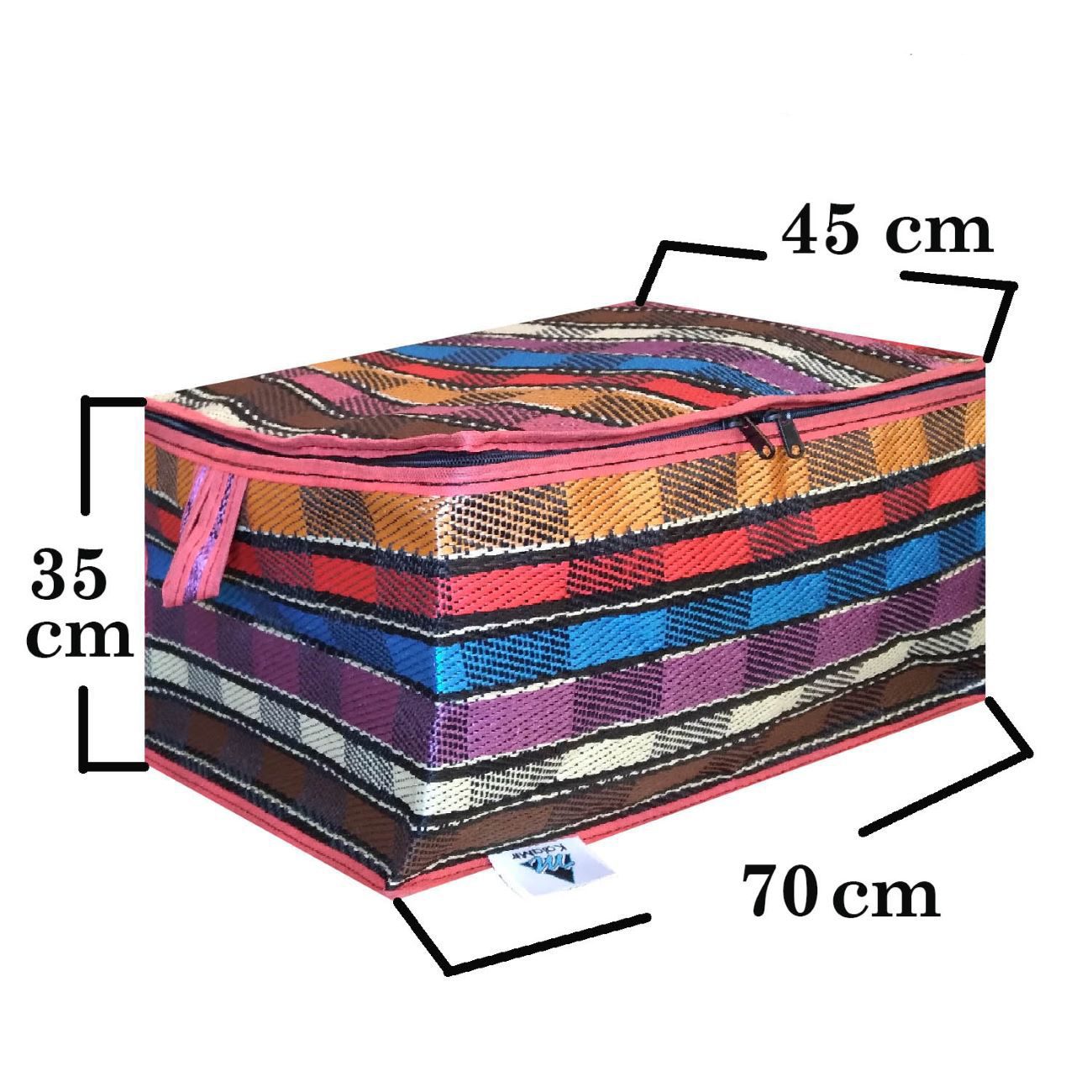 Organize your wardrobe in style with this Clothing Box – Jajim-Style Bundle Cloth. Crafted from a durable, handwoven textile inspired by traditional Jajim designs. The classic Jajim patterns bring a rich cultural touch to any room. Perfect for storing seasonal clothes, blankets, or household linens. Its soft yet sturdy construction ensures your items stay protected and neatly tucked away. The bundle cloth style makes it easy to wrap and secure your belongings. Lightweight and foldable for convenient storage when not in use. Add a charming Persian heritage vibe to your home décor. Ideal for travel, camping, or organizing small spaces in style.Experience the blend of practicality and artistry with this unique clothing box.
