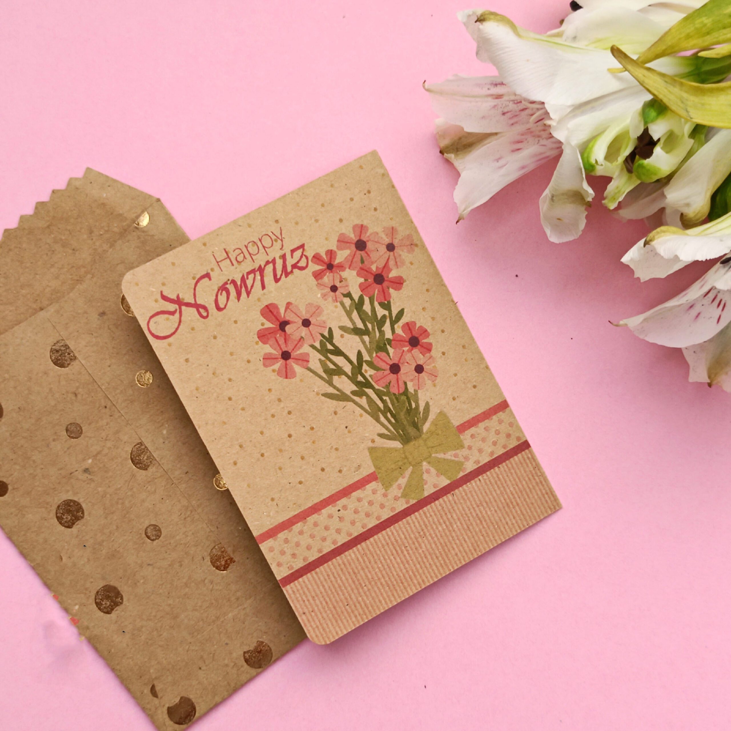 Price and Buy Kraft Paper “Happy Nowruz” Card with Hand-Illustrated Bouquet