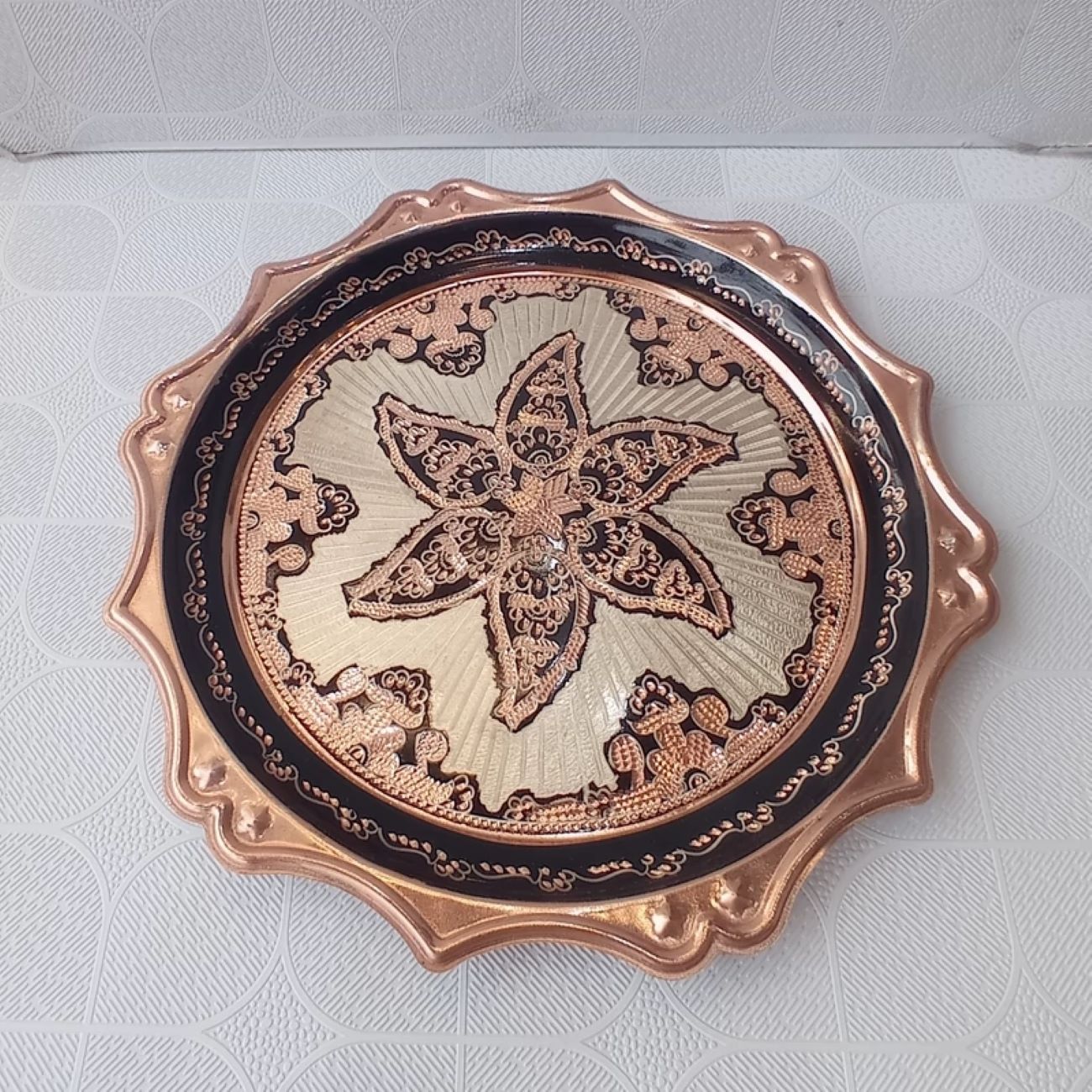 Immerse yourself in the timeless allure of our Copper Serving Tray, meticulously handcrafted by skilled Persian artisans with a hammering theme. This exquisite tray exudes an elegant blend of tradition and craftsmanship, making it a unique addition to your hosting essentials. Its versatility allows for serving tea, presenting an array of coffee assortments, or displaying an assortment of delectable treats, each moment accentuated by the tray’s cultural richness. Crafted by skilled hands, this copper tray stands as a masterpiece of artistry and functionality. Its hammered design not only brings an element of sophistication but also adds a touch of authenticity to your serving experience, showcasing the intricate workmanship passed down through generations of Persian artisans. Indulge in the cultural heritage and the timeless elegance that this handcrafted serving tray offers, promising to be a captivating centerpiece for your tea or coffee presentations.