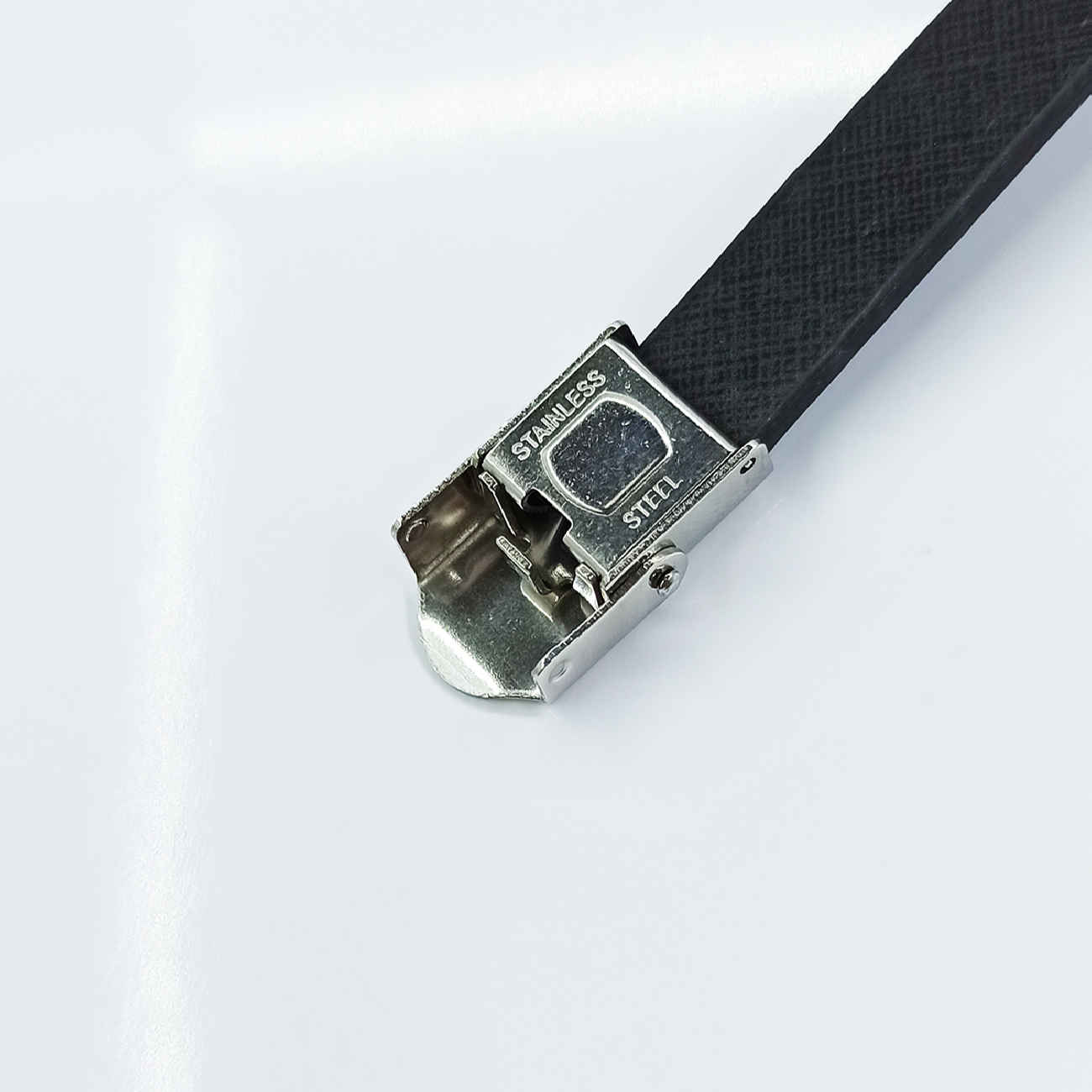 This Faux Leather Bracelet in classic black is a testament to durability and style. It features a sturdy steel metal charm that exudes elegance. The charm and engraving on this bracelet are resistant to discoloration and skin sensitivities, ensuring both quality and comfort. This Leather Bracelet is more than just an accessory; it’s a statement of longevity, sophistication, and personal expression. Its versatile black hue effortlessly complements various outfits, making it ideal for everyday wear or special occasions. Discover a piece of jewelry that not only complements your sense of style but also resonates with your character. Opt for our Leather Bracelet to introduce a reliable and chic addition to your collection. It effortlessly blends fashion and substance, making it a prized asset in your accessory assortment.