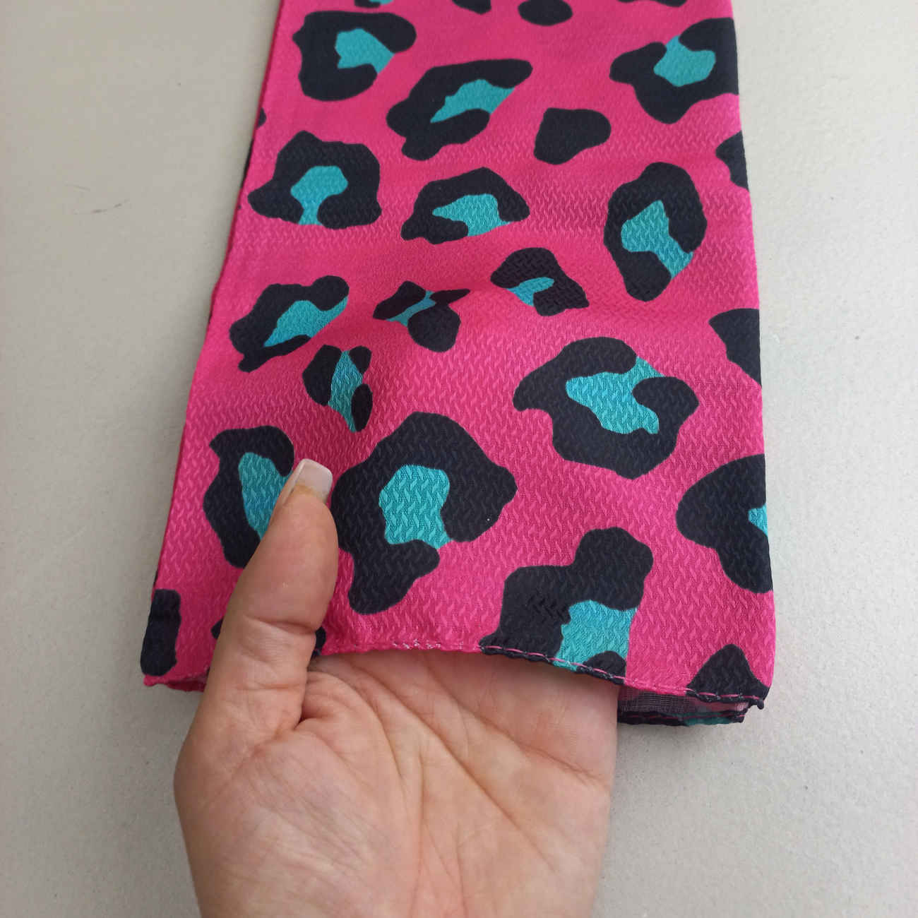 Add a pop of personality to your outfit with this beautifully designed mini scarf featuring a modern blue and white leopard print. Its soft pink background enhances the contrast, making it a chic and eye-catching accessory for any season. Whether you’re dressing up for a special occasion or adding flair to a casual look, this scarf brings effortless style and elegance. Crafted from lightweight, breathable fabric, it’s perfect for all-day wear without discomfort. The compact size makes it versatile—tie it around your neck, use it as a headband, wrap it on your handbag, or wear it as a wrist accessory. However you choose to style it, this mini scarf adds a fashionable edge to your ensemble. Designed for those who appreciate bold prints and soft tones, this scarf combines classic charm with a trendy twist. It’s an ideal gift for fashion lovers or a treat for yourself to refresh your wardrobe with a unique and stylish accent.