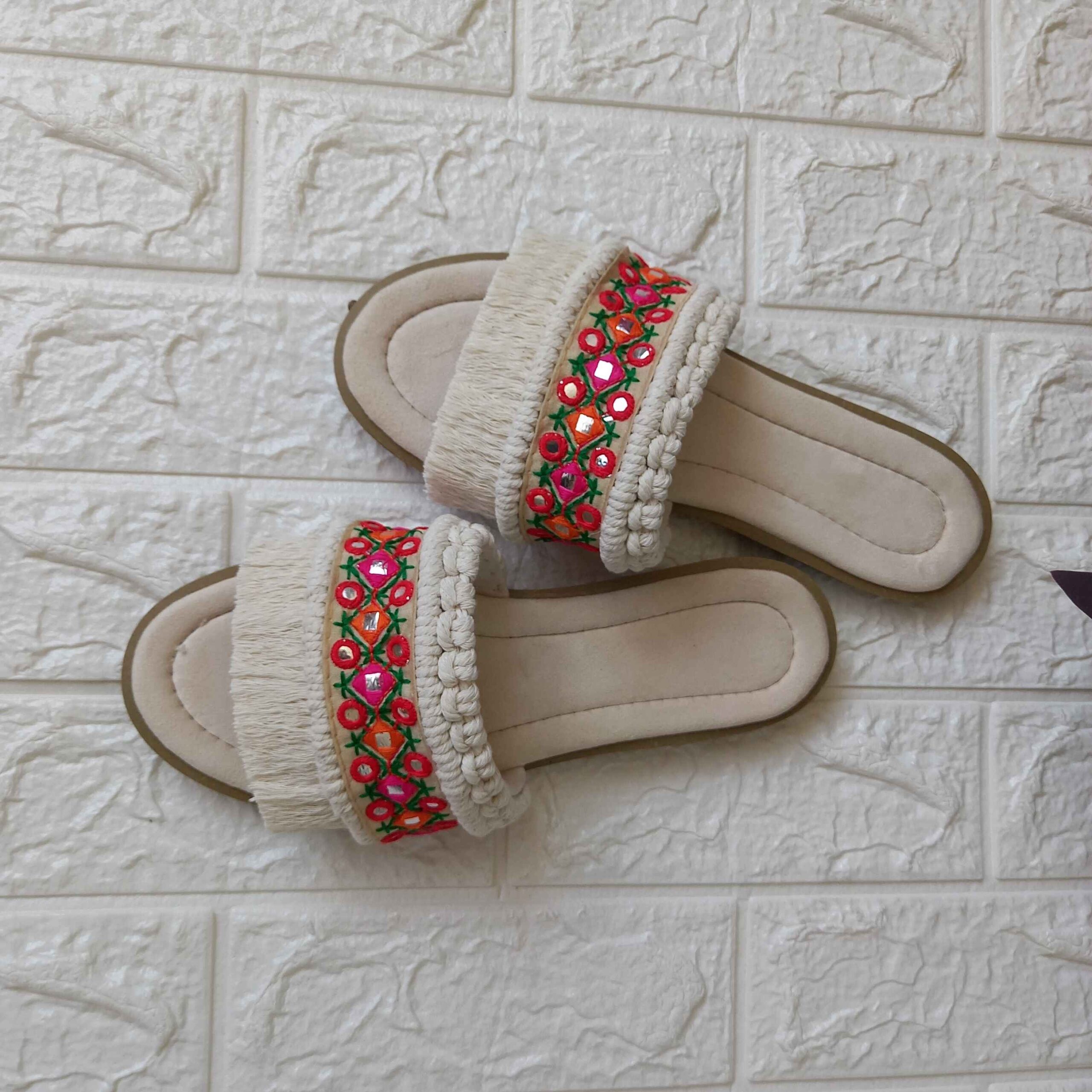 Step into style and comfort with the “Macrame Boho Chic Flat Slippers Handmade Model Embroidered.” These exquisite slippers feature intricate macrame detailing combined with vibrant embroidery, creating a unique and eye-catching design. Each pair is handcrafted with care, ensuring exceptional quality and a distinctive bohemian flair that effortlessly elevates any casual outfit. Designed for both comfort and durability, these flat slippers are perfect for everyday wear. Whether you’re lounging at home or stepping out for a casual day out, the “Macrame Boho Chic Flat Slippers” offer a blend of style and practicality that makes them an ideal addition to your footwear collection. Embrace the artistry of handmade craftsmanship and make a bold fashion statement with these beautiful embroidered slippers.