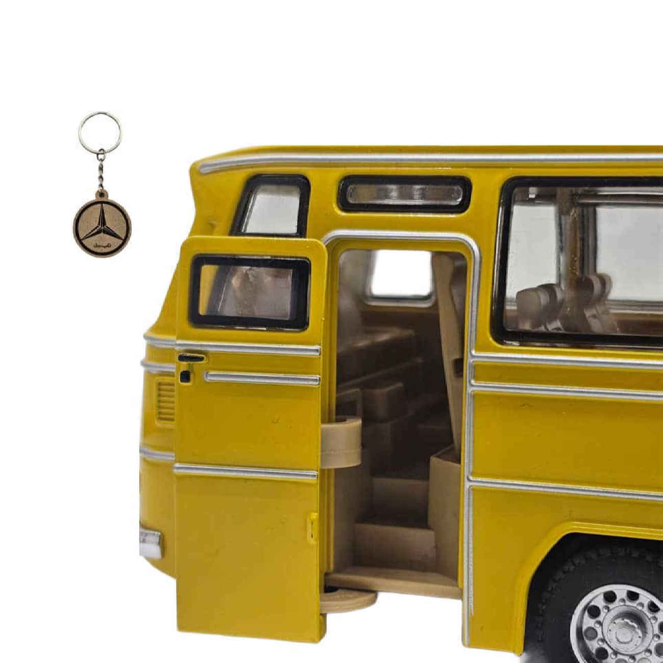 Bring home a piece of vintage automotive history with the Nab Sell Mercedes-Benz 302 Die-Cast Bus Model, a nostalgic and beautifully crafted miniature perfect for both play and display. Known for its classic design and iconic presence on the roads, the Benz 302 has been authentically recreated in this charming metal model. Crafted from high-quality die-cast metal, this bus features opening doors, real working headlights, and built-in musical sounds that bring the model to life. With a pull-back action, it can zoom forward after being pulled back – adding an interactive touch that kids will love. The model also comes with a matching keychain, making it a great gift idea for collectors and fans of retro vehicles. Its detailed design closely resembles the original Benz 302, making it a favorite among vintage toy enthusiasts and those with memories tied to these iconic buses. Whether you’re looking for a collectible display item or a fun toy for a young transport lover, this Mercedes-Benz 302 bus ticks all the boxes.