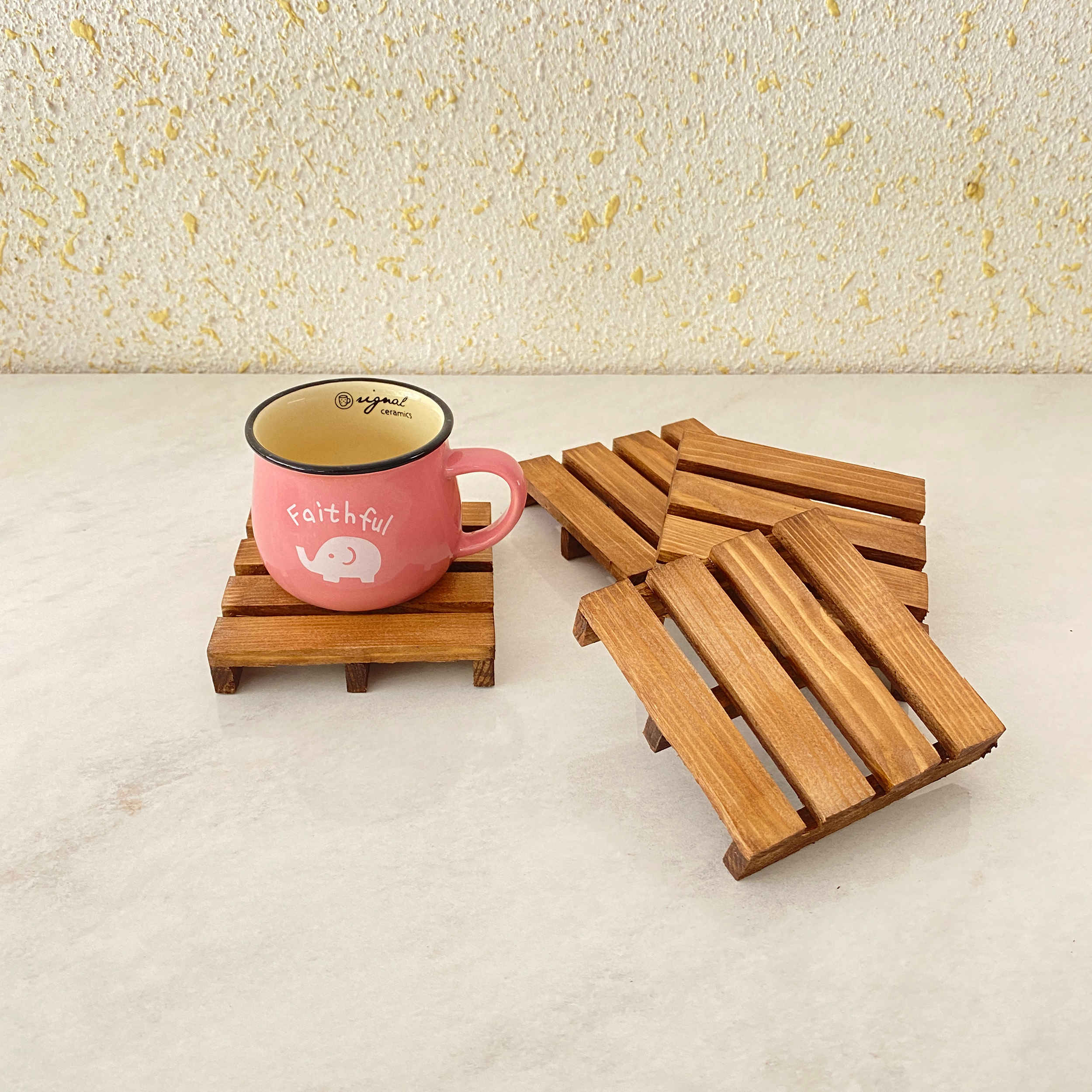 Add a touch of rustic charm to your table with this wooden pallet coaster. Inspired by the look of miniature shipping pallets, it brings a creative and modern accent to your home, office, or café. Whether you’re enjoying a hot coffee or a cold drink, this coaster helps protect your surfaces from heat, moisture, and scratches. Its lightweight and compact design makes it easy to use, clean, and store. The natural wood finish blends effortlessly with both classic and contemporary décor. Durable and reusable, it’s perfect for daily use or special gatherings. A simple yet stylish accessory that complements any table setting and makes a great conversation piece.
