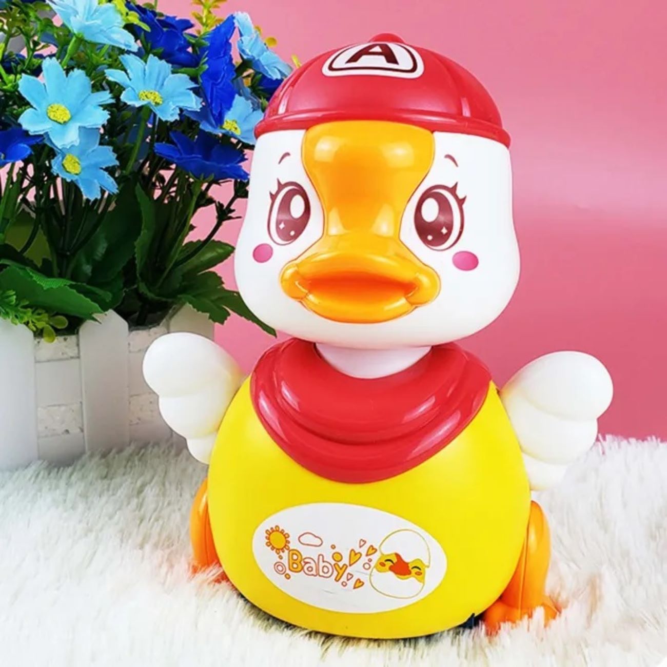 The Moving & Musical Light-Up Hands Duck Toy is a delightful companion for young children, designed to captivate and entertain with its whimsical features. This charming duck waddles and dances to cheerful melodies, encouraging movement and interaction.1 Its bright, friendly design, complete with colorful accents, immediately draws the eye, fostering visual stimulation. As the duck moves, its hands illuminate with vibrant light patterns, adding a captivating visual display that enhances sensory exploration. 2 The integrated musical function plays a variety of engaging tunes, stimulating auditory development and promoting a sense of rhythm. Crafted from child-safe materials, this toy is built for durability and safe play. This interactive duck offers a unique blend of movement, music, and light, making it a perfect gift to spark joy and encourage imaginative play, while also aiding in the development of motor skills and sensory awareness.