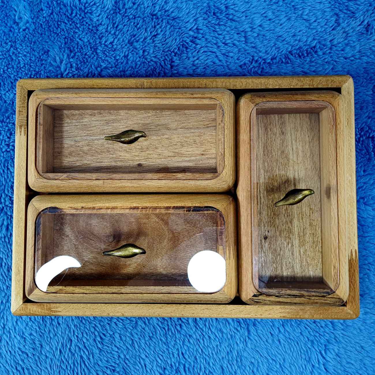 Crafted from premium quality wood, this elegant organizer exudes a warm, rustic charm that elevates any tabletop or kitchen counter. Its finely polished finish highlights the natural wood grain, blending timeless craftsmanship with enduring durability. Designed with both beauty and function in mind, it serves as a sophisticated centerpiece for gatherings or as a tasteful addition to your home décor. Inside, thoughtfully sectioned compartments keep dry fruits, nuts, and other treats neatly separated, ensuring freshness and easy access. The well-proportioned design allows for generous storage without compromising on style, making it perfect for family get-togethers, festive occasions, or casual snacking. Each compartment is carefully crafted to maintain the natural flavors and textures of its contents. With its versatile appeal, this wooden organizer suits both traditional and contemporary settings. Whether displayed during festive celebrations or used daily, it adds a touch of refined elegance to your serving experience. Its sturdy build promises years of use, while the rustic aesthetic creates a warm and inviting atmosphere for guests and family alike.