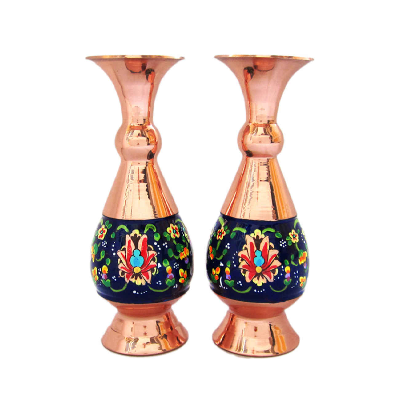 This handcrafted set includes two small 16 cm Pardaz copper vases (set of 2) presented in a luxurious velvet box. This exquisite artistic collection adds elegance and charm to any home with its beauty and authenticity. The vases are made of high-quality copper and hand-painted by skilled artisans with intricate floral and botanical Pardaz designs. Perfect as a gift for birthdays, Mother’s Day, housewarmings, or as a special present for loved ones, this stunning copper set also makes a striking decorative accent for display cabinets, tabletops, or living room shelves. It effortlessly enhances the aesthetic appeal of any space and brings a touch of sophistication to your décor. The design and color palette of this set are versatile, harmonizing with a wide range of interior styles—from richly patterned traditional décor to contemporary minimalist settings. Whether you’re looking for a valuable gift or aiming to make a bold statement in your home decoration, this Pardaz copper vase set is sure to capture the attention of every visitor.