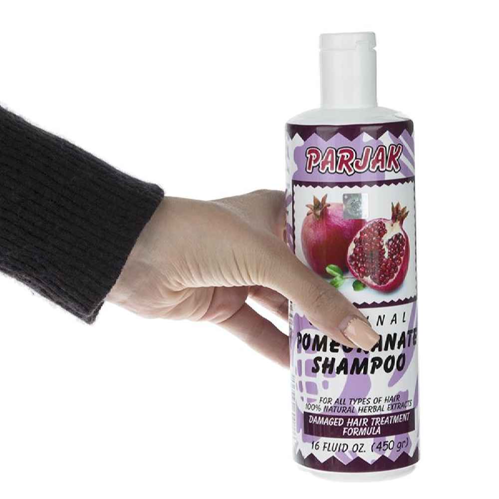 its ability to enhance blood circulation and repair hair follicles. By boosting scalp circulation, it helps maintain hair in the active growth phase (anagen), stimulating hair roots and promoting healthy hair growth. Additionally, this shampoo effectively combats hair loss and prevents premature graying, ensuring your hair remains vibrant and youthful. The antioxidant-rich properties of pomegranate extract also contribute to nourishing the scalp and hair follicles, providing essential nutrients that support overall hair health. Its protective qualities extend to shielding the hair from environmental stressors and UV damage, maintaining hair vitality and radiance. Embrace the natural benefits of pomegranate with Parjak Pomegranate Shampoo, ensuring your hair receives optimal care for lasting strength and luster.