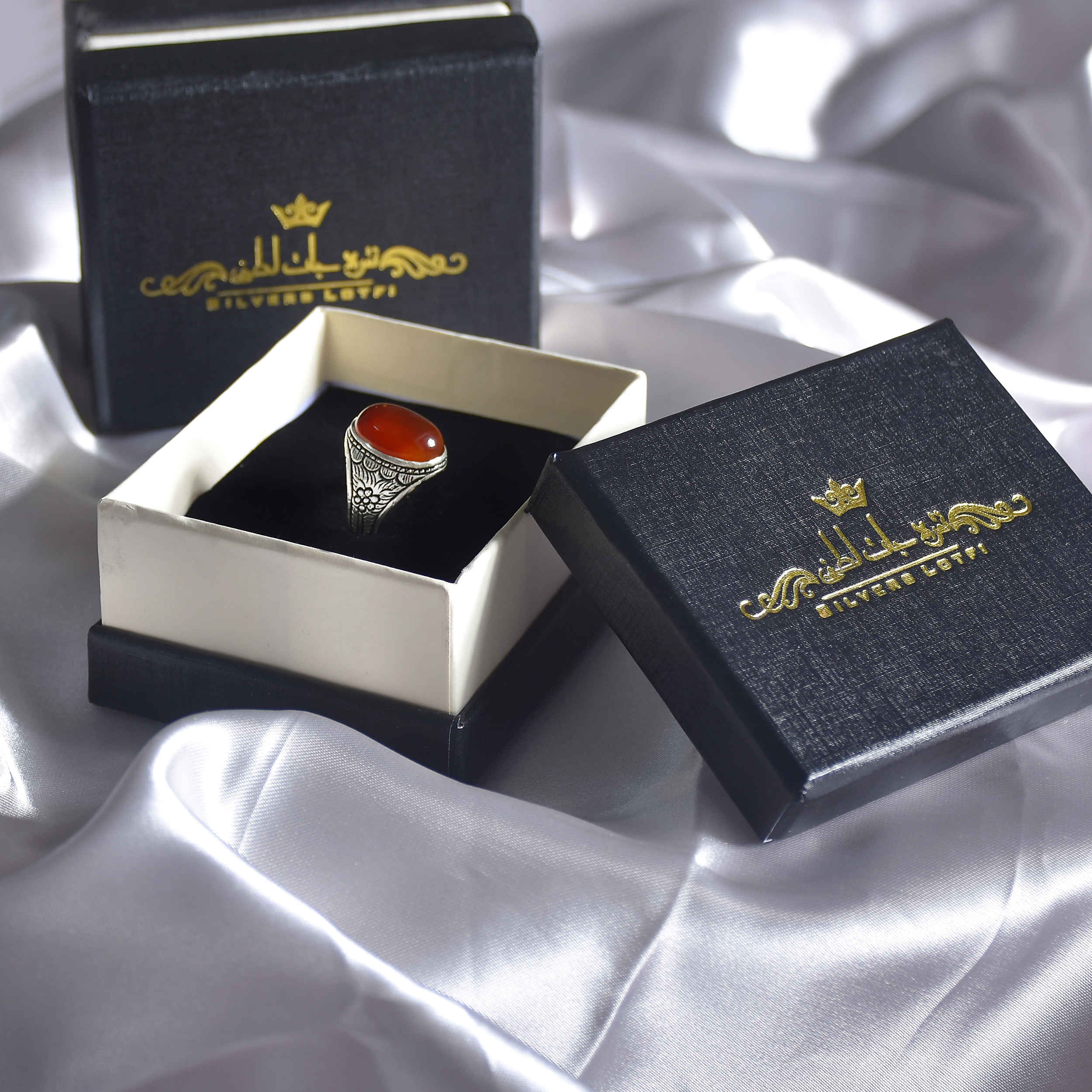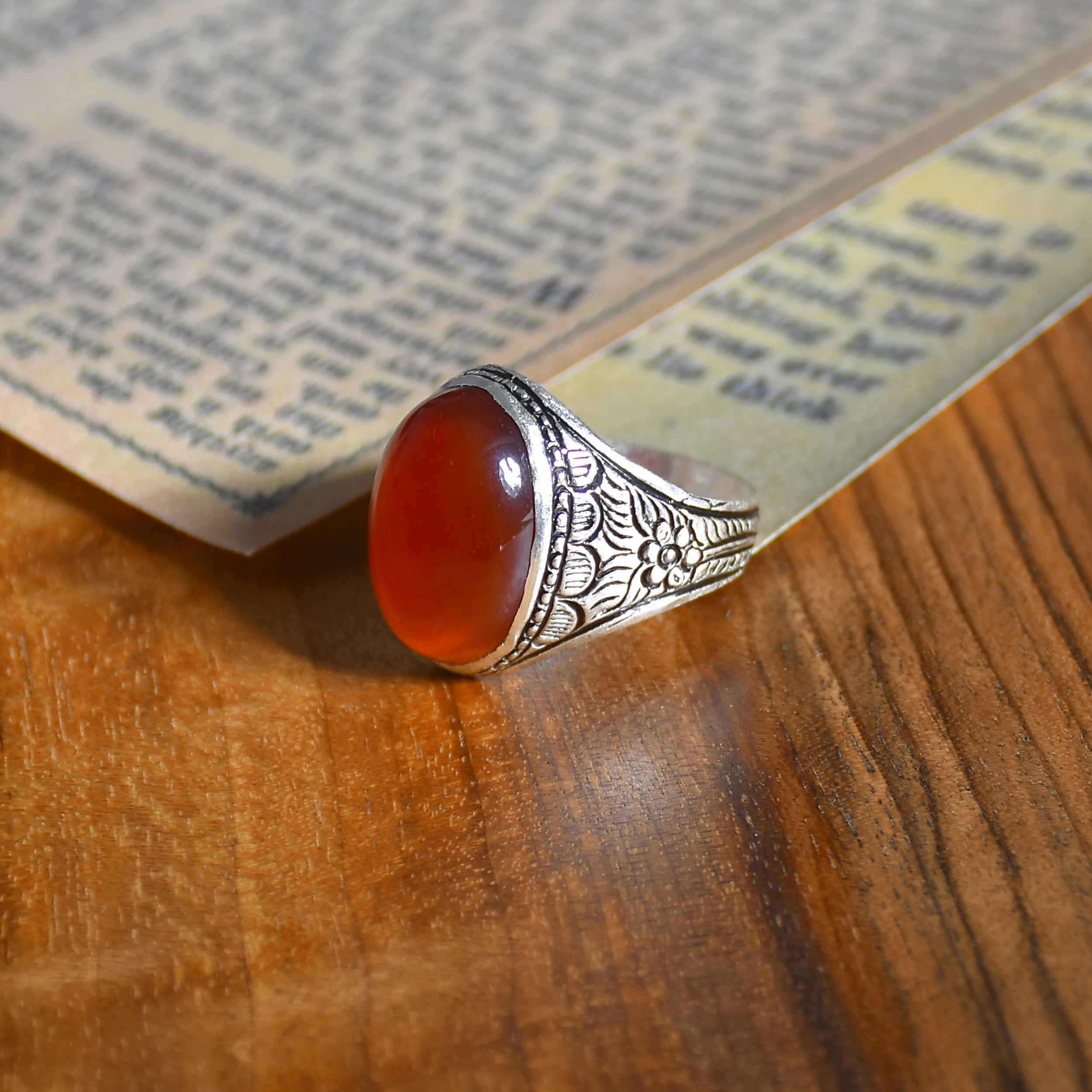 Elevate your style with our Persian Style Agate Ring, specially designed for men. Handcrafted with care, this ring showcases the enchanting beauty of natural agate, set in exquisite silver. Each ring is a wearable masterpiece, reflecting the timeless allure of Persian art and culture. The natural agate gemstone, carefully selected for its unique patterns, adds a touch of elegance to this distinguished accessory. Experience the magic of wearing a genuine piece of nature on your finger. Our Persian Style Agate Ring in silver is a symbol of sophistication and cultural richness, perfectly suited for any occasion. Make a statement with this meaningful and exquisite ring. Embrace the enchanting world of Persian art and elevate your style with this handcrafted treasure. Shop now and own a piece of artistry that captures the essence of Persian aesthetics.